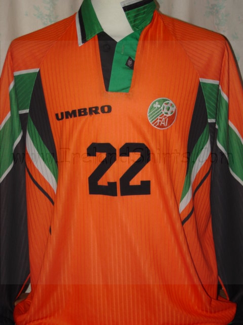 But in the nineties and early naughties orange kits had mixed fortunes. Firstly, and almost inexplicably, Umbro decided to release an orange Republic of Ireland shirt. I say "inexplicably" because, for mainly political and historical reasons, an orange shirt was - rightly or wrongly - never likely to be a colour that Irish fans in the Republic would take to. However, I say "almost" because the Irish tricolour features green, white and orange so having an orange away shirt is akin to England having a red one. Irish fans are proud to wear shirts that represent the three colours, just maybe not the third so predominantly. RofI haven't worn an orange shirt since.