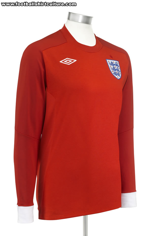 The new England away shirt has been available for quite a while now but this afternoon the side will turn out in all red against Slovenia and the combination’s supposed talismanic qualities (1962 World Cup etc) will be put to the test. By the time you read this you’ll probably know how they fared – dare I say it, maybe even whether or not England’s World Cup 2010 has been a success. About time myself and fellow DesignFootball.com reviewer curswine put it through its paces…