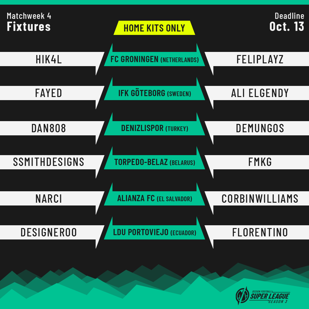 Please, remember to submit only home kits for this round! Deadline is Thursday, October 13, 23:59 GMT.