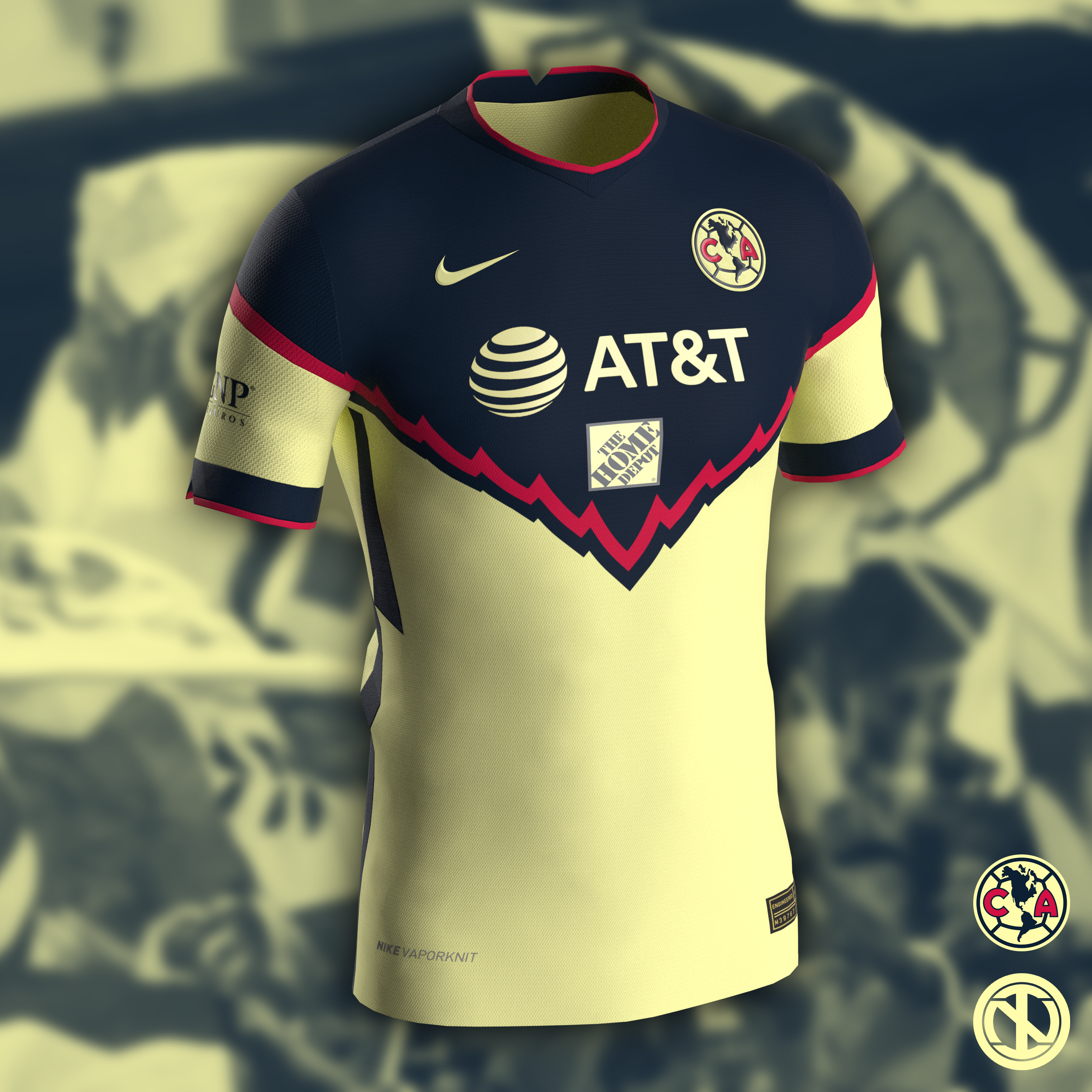 Home kit concept for Mexico's Club América. This design is based on some of the most iconic kits used by the Mexican team; the shape of the upper panel is inspired by the plumage of an eagle, as the club's nickname is "Las Aguilas" ("The Eagles").