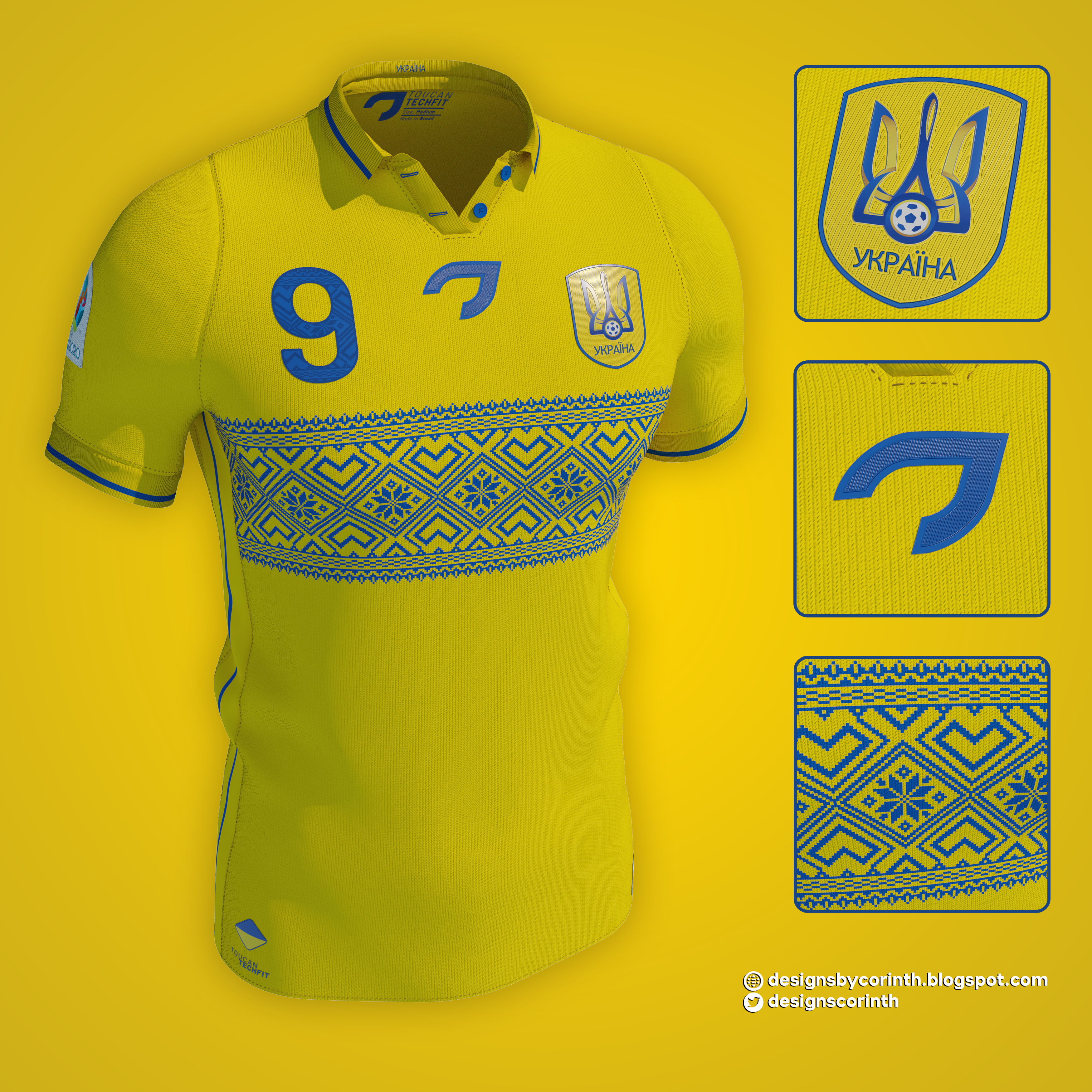 Home shirt for the Ukrainian National Team, inspired by the country's traditional knitting patterns.