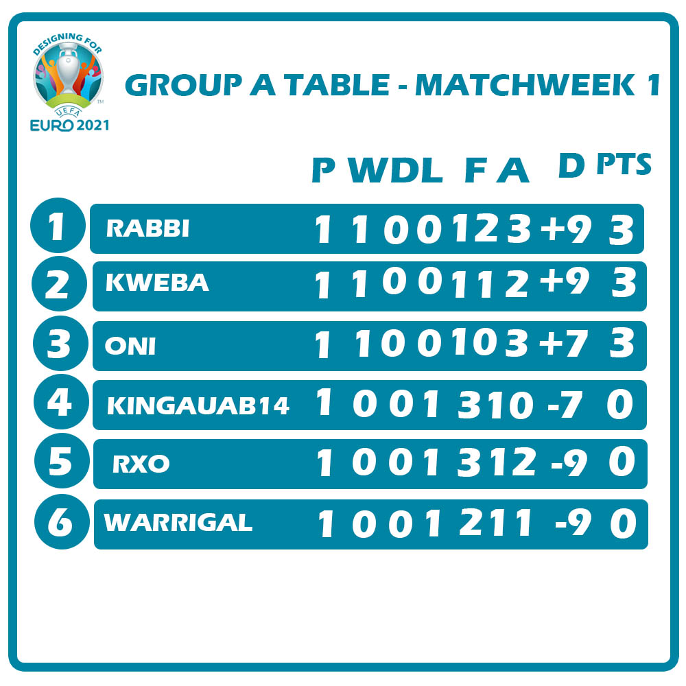 Group B Table Matchweek 1
