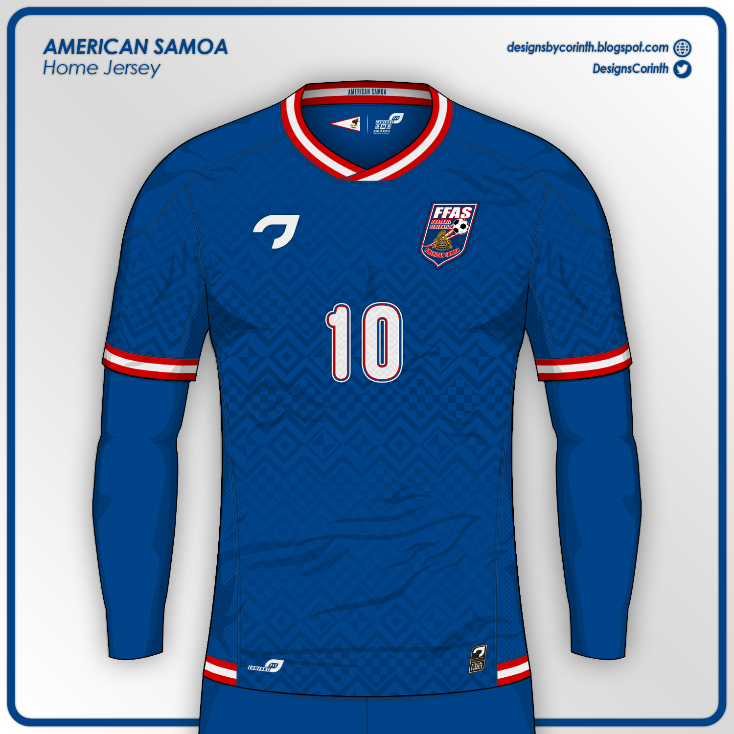 Home jersey for American Samoa national team, inspired by the country's art and architecture.