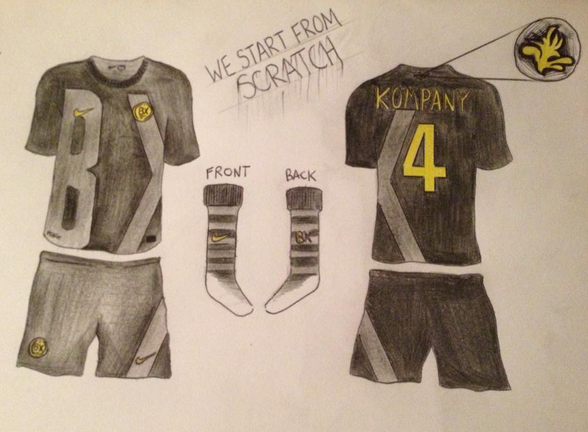 For the away kit, I decided to go with black and anthracite as the main colours. The graphic on the front of the shirt, slightly carries onto the back of the shirt, and stops where the name and number would go. Almost holding the players name up.
