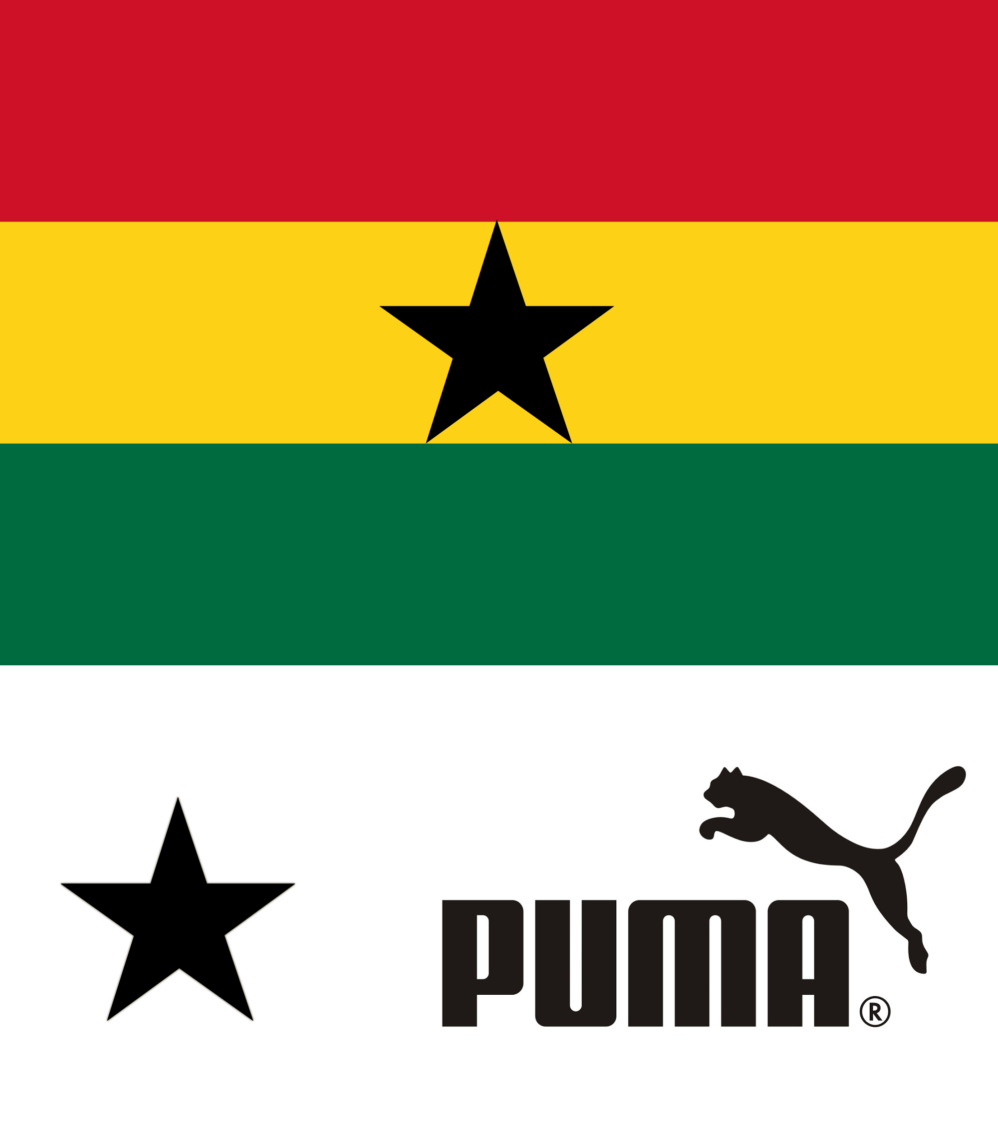 Flag of Ghana, the black star of Ghana (the preferred crest) and the puma logo.