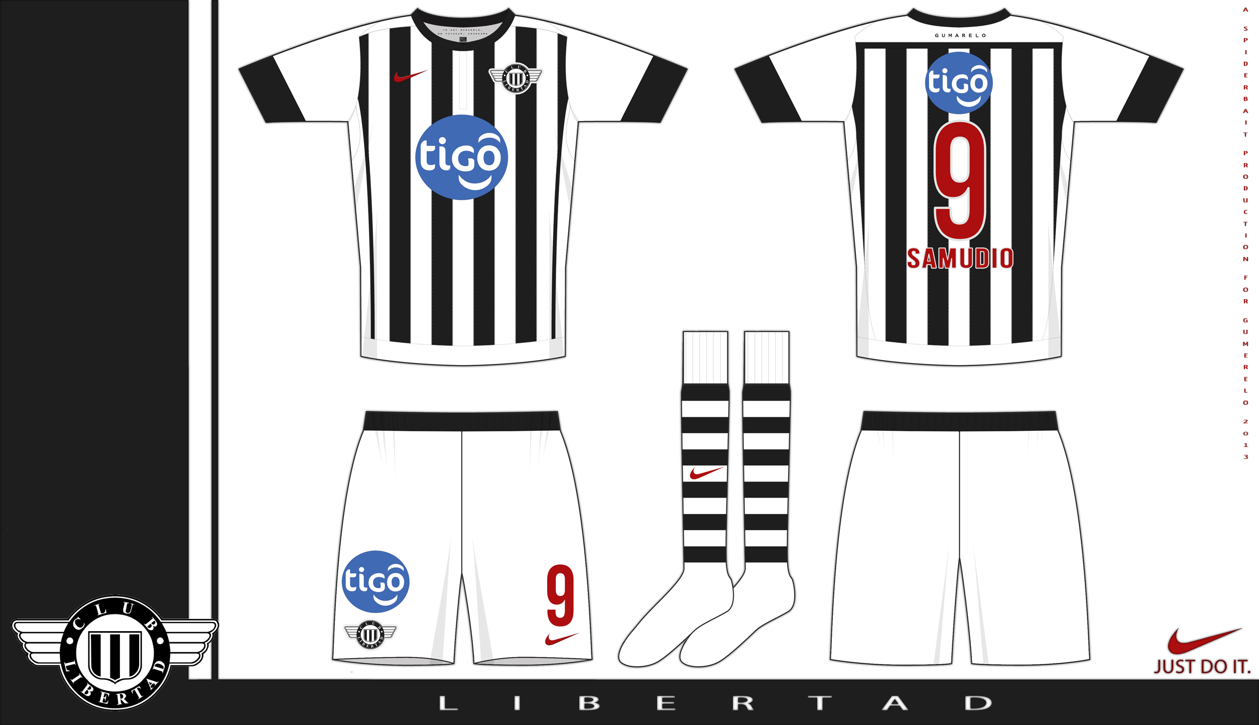 Cazador template, for Club Libertad of Paraguay, in the black and white stripes for home and red for the change.