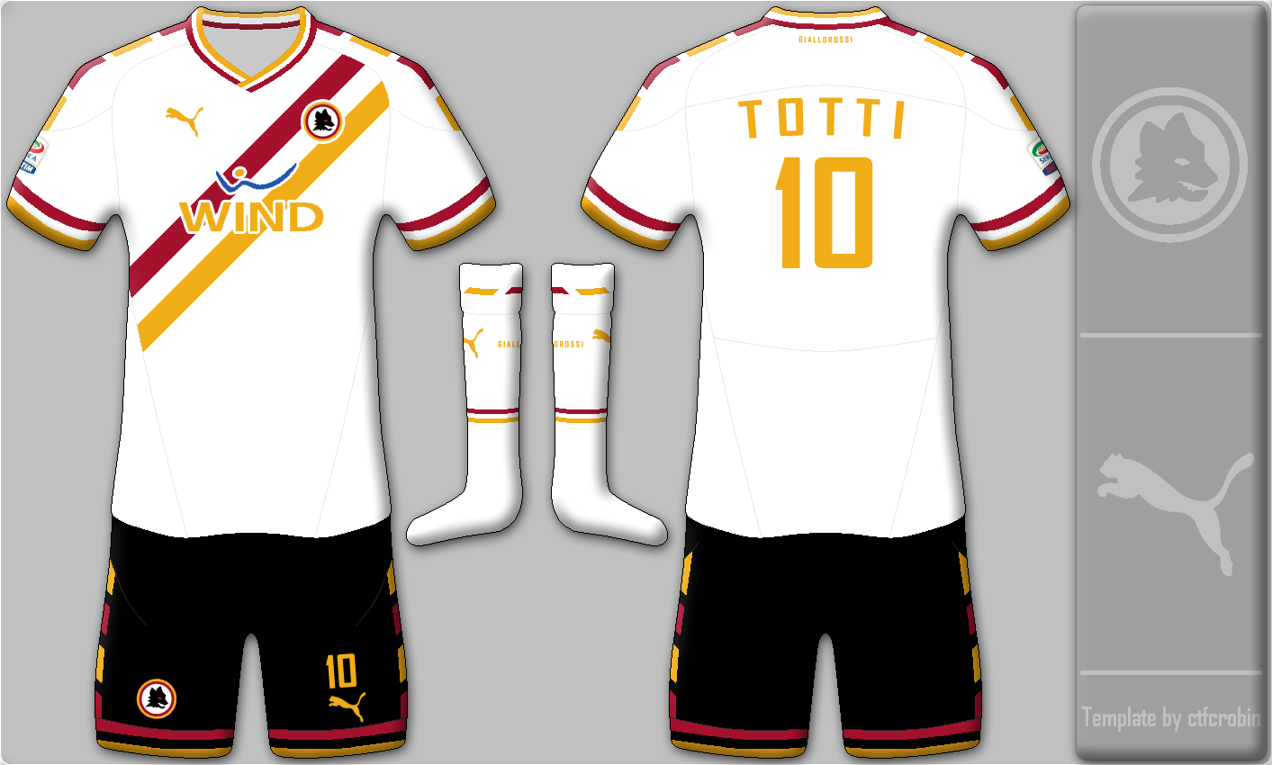 Away: i used roma\'s old crest, and two-stripes element.