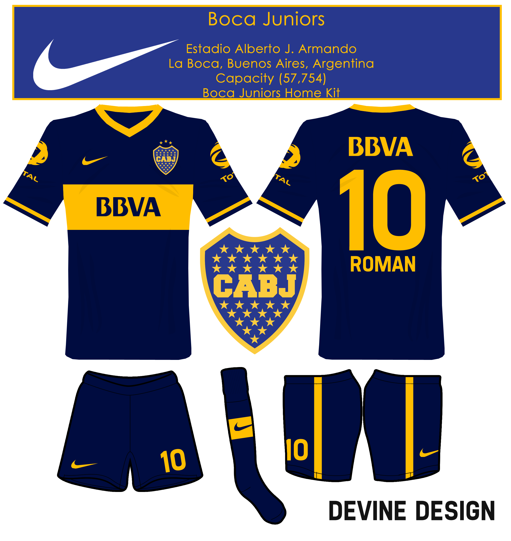 Staying with tradition with the classic Boca bar. After a short stint with royal blue, the kit goes back to navy, and introduces only two colors on the kit, Navy and Gold.