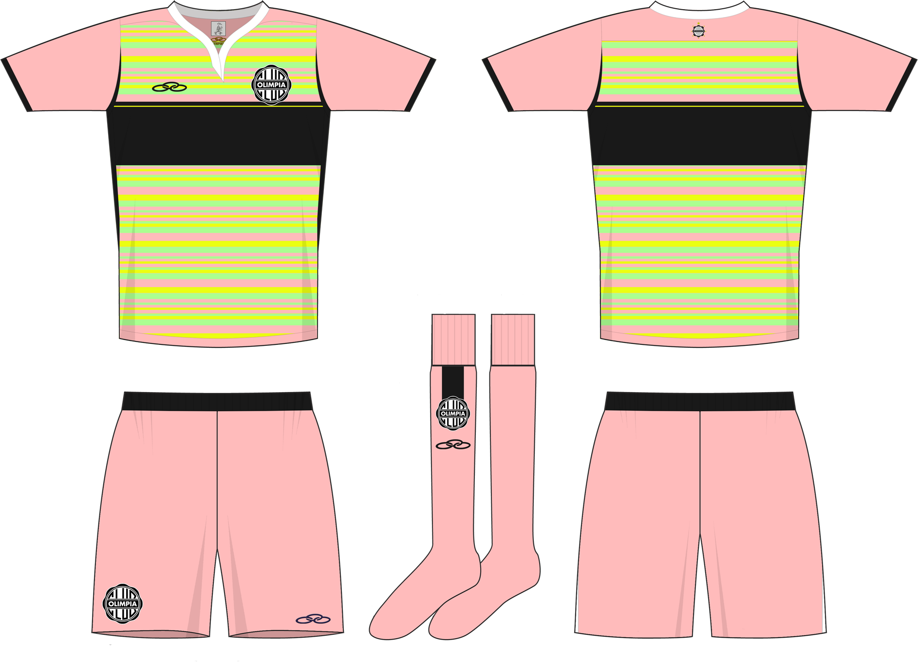Goalkeeper kit for Paraguays most successful club, with the black chestband of the white outfield shirt a prominent feature.
