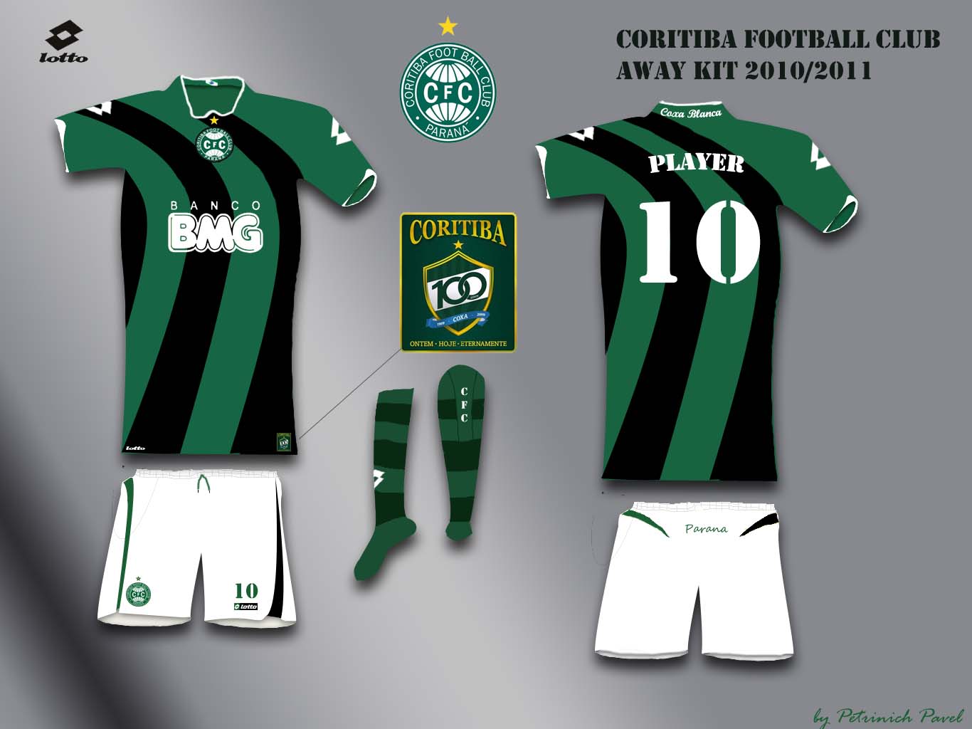 Greetings! It is away kit FC Coritiba. I used a Lotto sponsor. On a collar inside the flag of staff Parana is located.