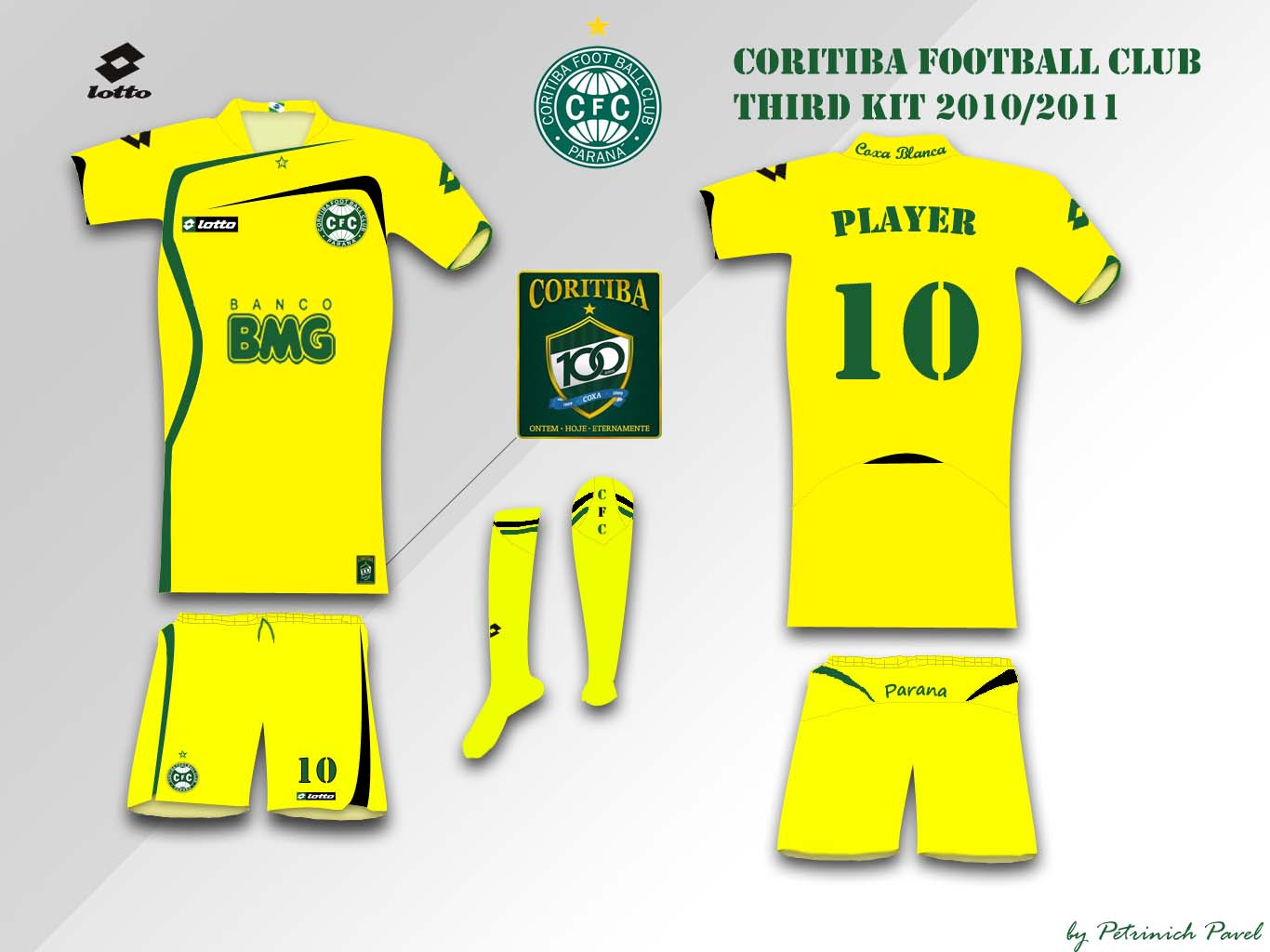 Greetings! It is third kit FC Coritiba. I used a Lotto sponsor. On a collar inside the flag of staff Parana is located.