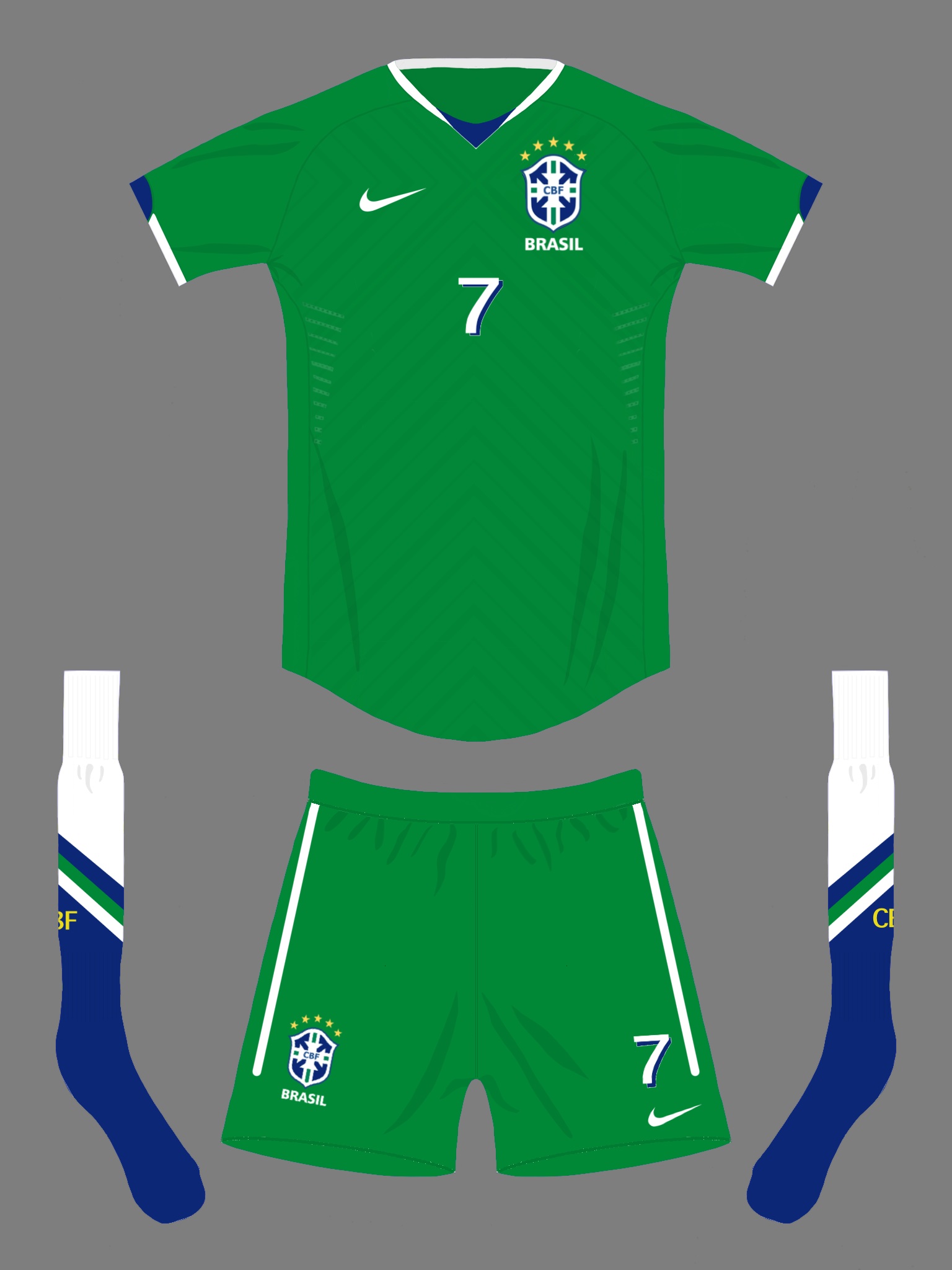 • Generic Description: Changing their identity completely but still staying true to the Brazilian flag and confederation colours. With the only trace of yellow, the most prominent colour currently, on the stars that denote number if worl championships.