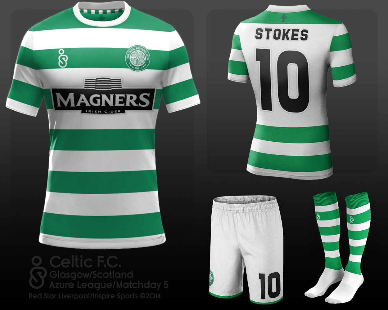 • Generic Description: Can't really do much to the iconic green and white hoops, so I've trid to make it as clean and classy as possible. Celtic cross watermark inside collar and on back of neck.