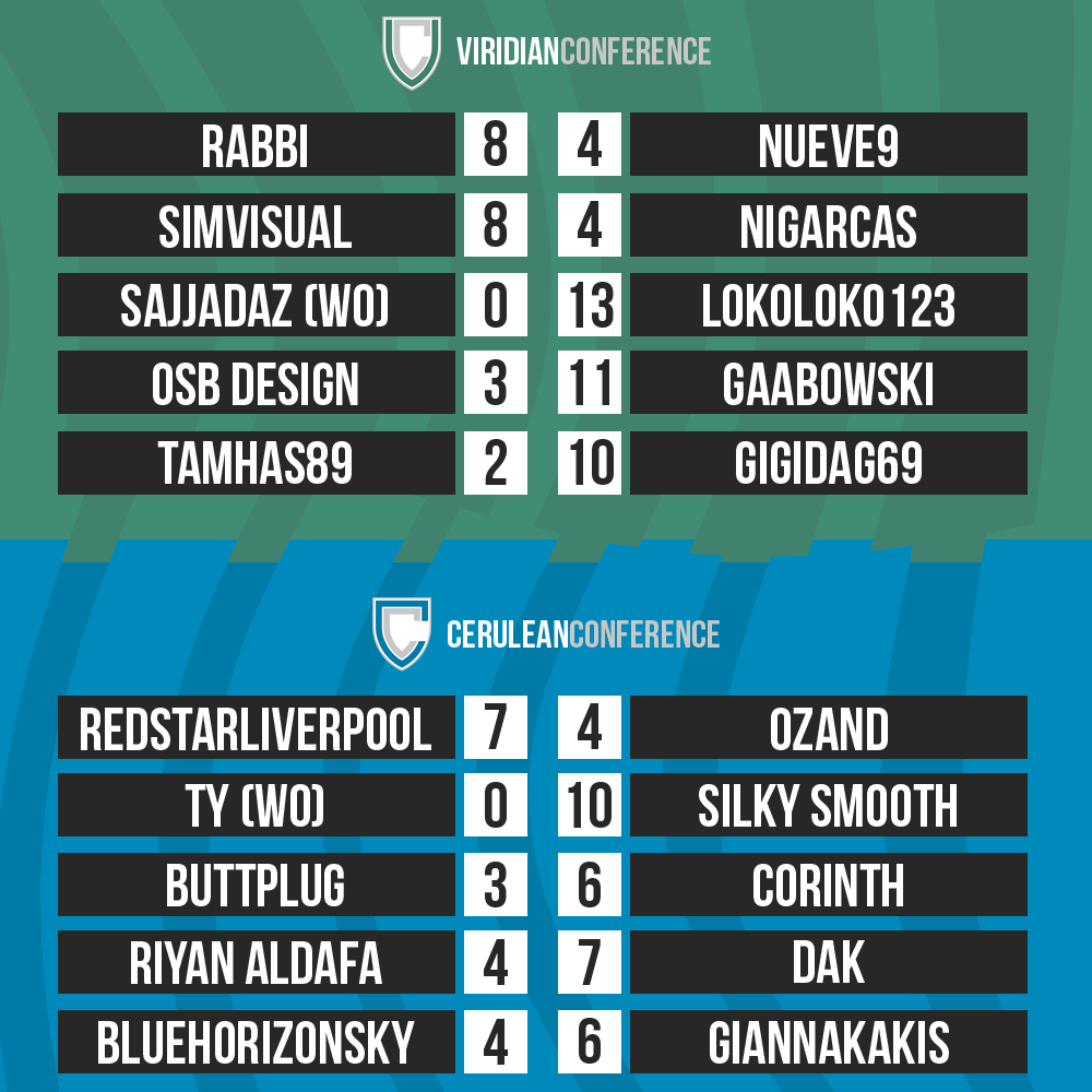 • Generic Description: Please correct me if you find any mistake. Lokoloko123 and Silky Smooth were given 13-0 and 10-0 wins (average number of votes in this round in each conference), as sajjadAZ and ty failed to submit their designs within the deadline.