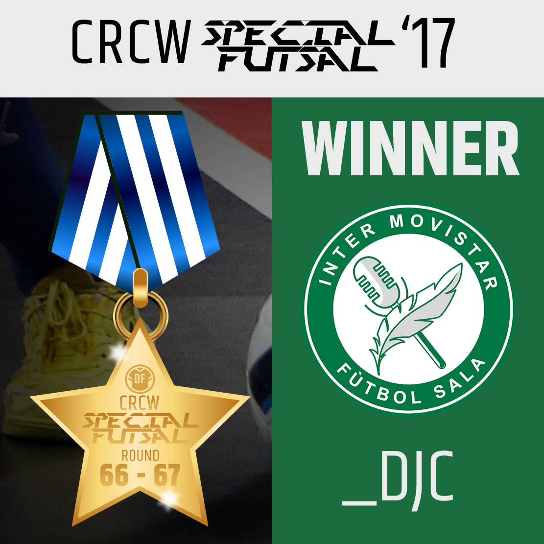 • Generic Description: And we found the great winner of the CRCW Special Futsal, many congratulations to _djc for this fantastic ridge of Inter Movistar.