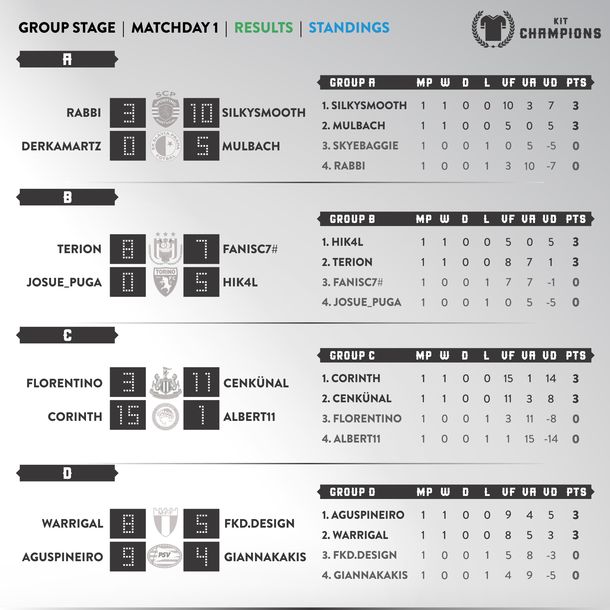 Matchday 1 - results & standings
