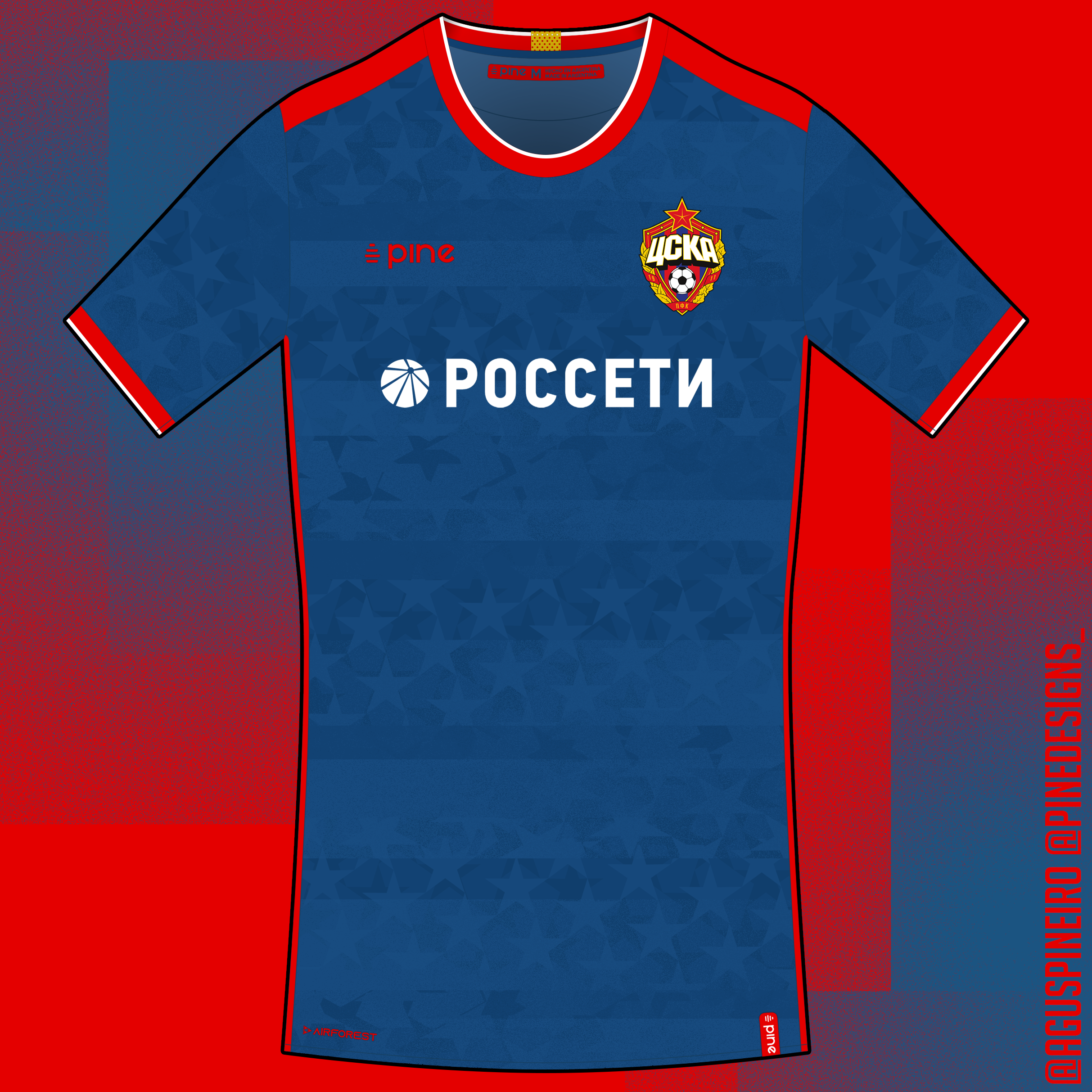 • Generic Description: Away kit design for CSKA Moscow, from Moscow, Russia. THe pattern is inspired by the relationship between the club and the army. The kit is completed with white shorts and socks.