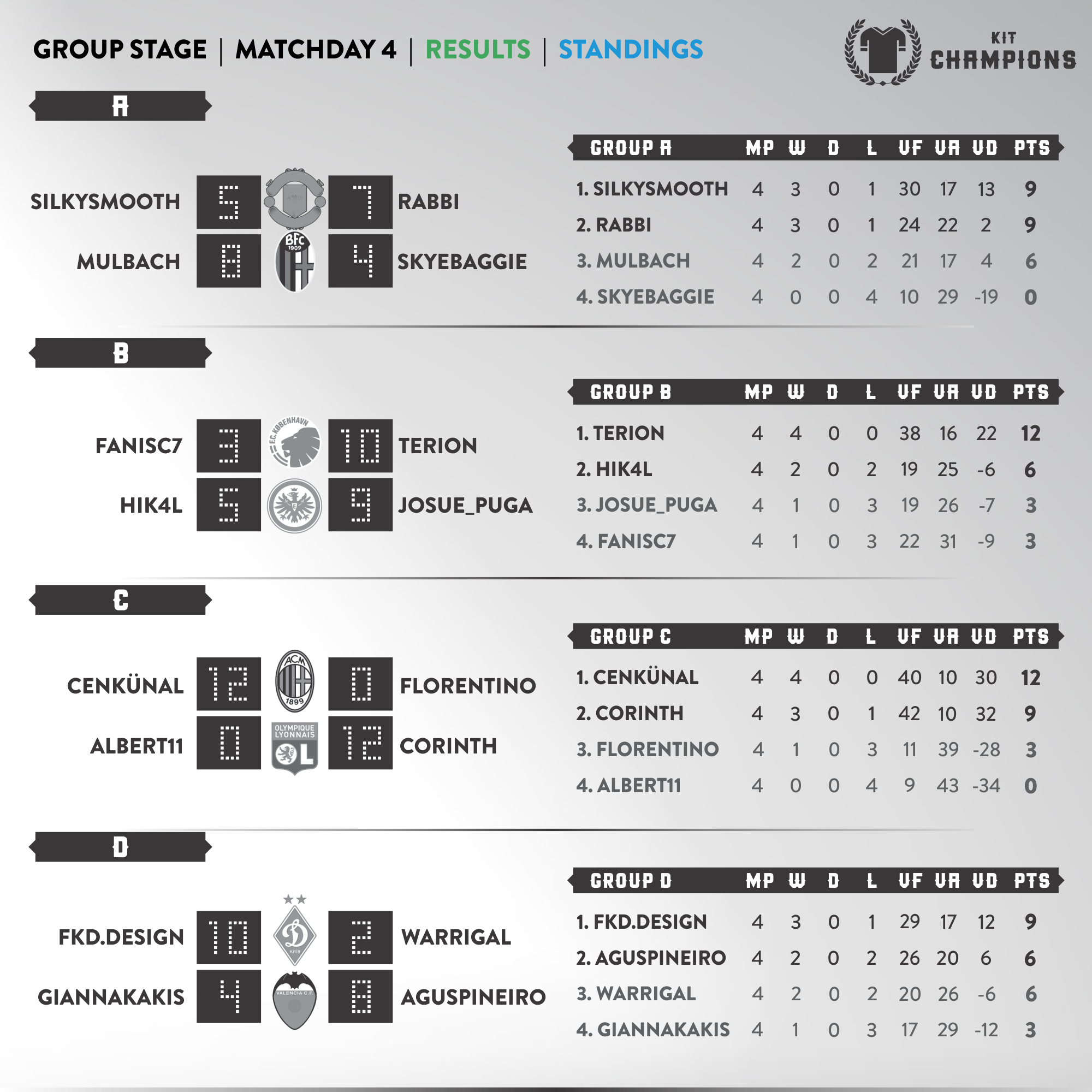 Matchday 4 - results & standings