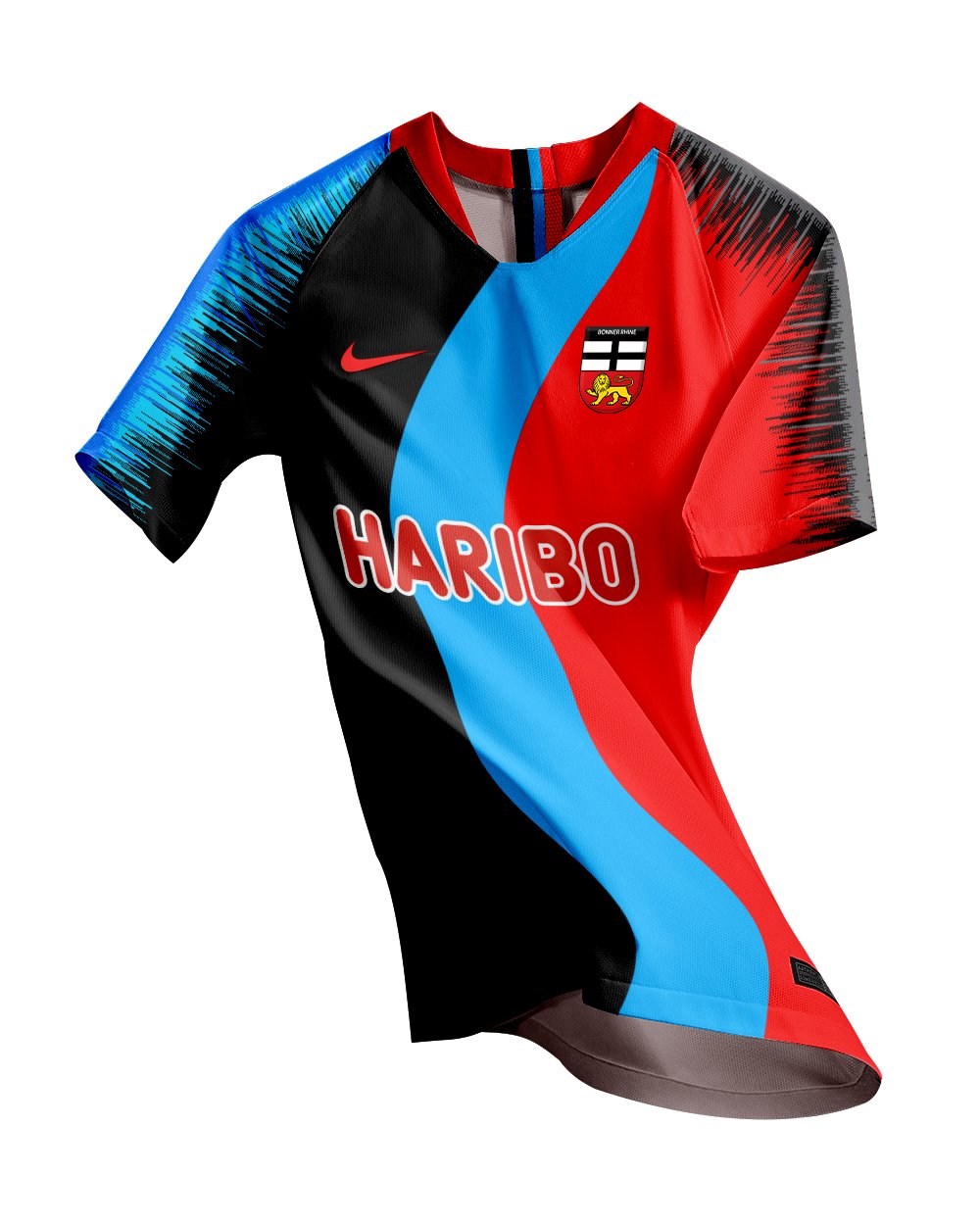 • Generic Description: Despite being the capital of the old footballing powerhouse West Germany. The River Rhine is depicted in the middle, with the cities colours black and red on either side. The crest uses the Bonn lion crest. The sponsor is Haribo, who have their headquarters in Bonn.