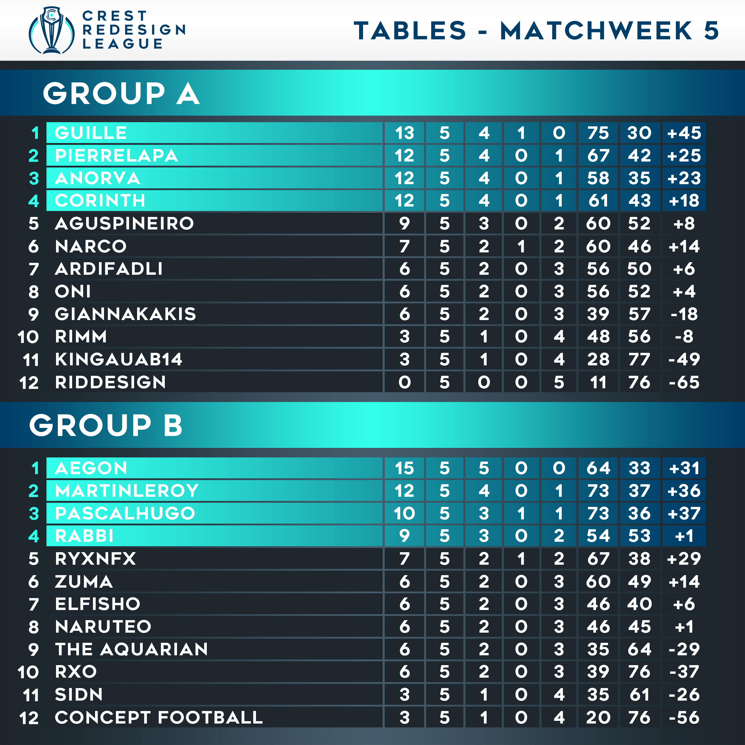 Tables - Matchweek 5