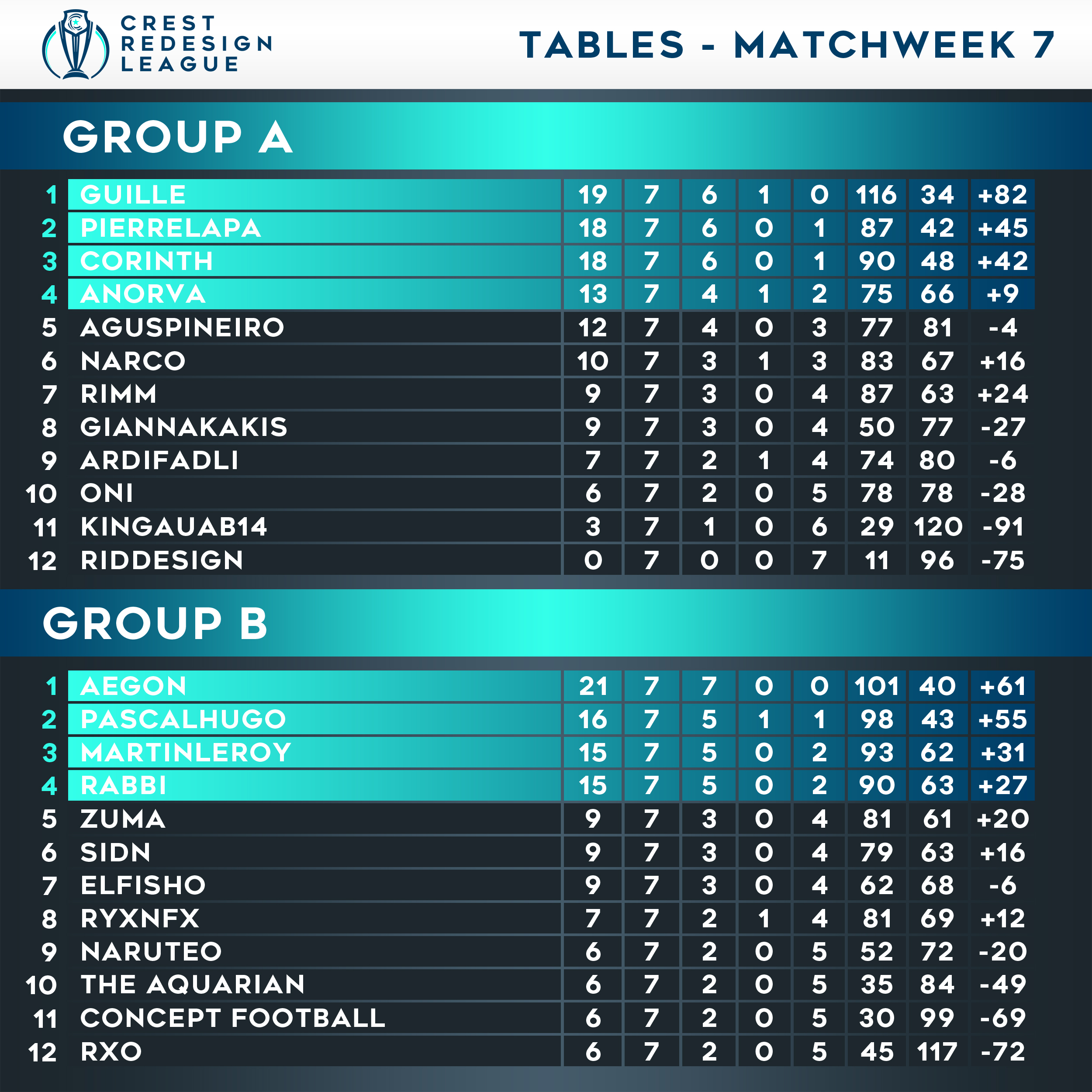 Tables - Matchweek 7