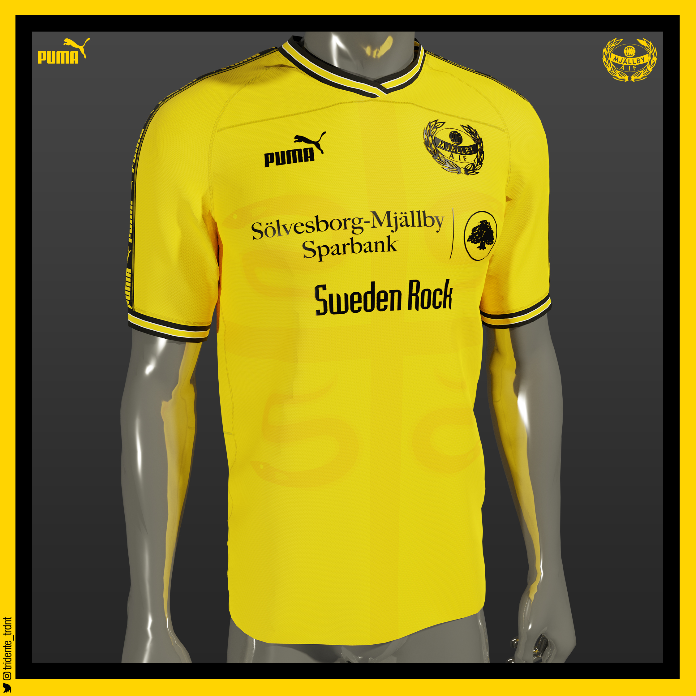 • Generic Description: On the front of the shirt there's the Sölvesborg Municipality coat of arms (Mjällby is a locality situated in Sölvesborg Municipality, I hope is visible)