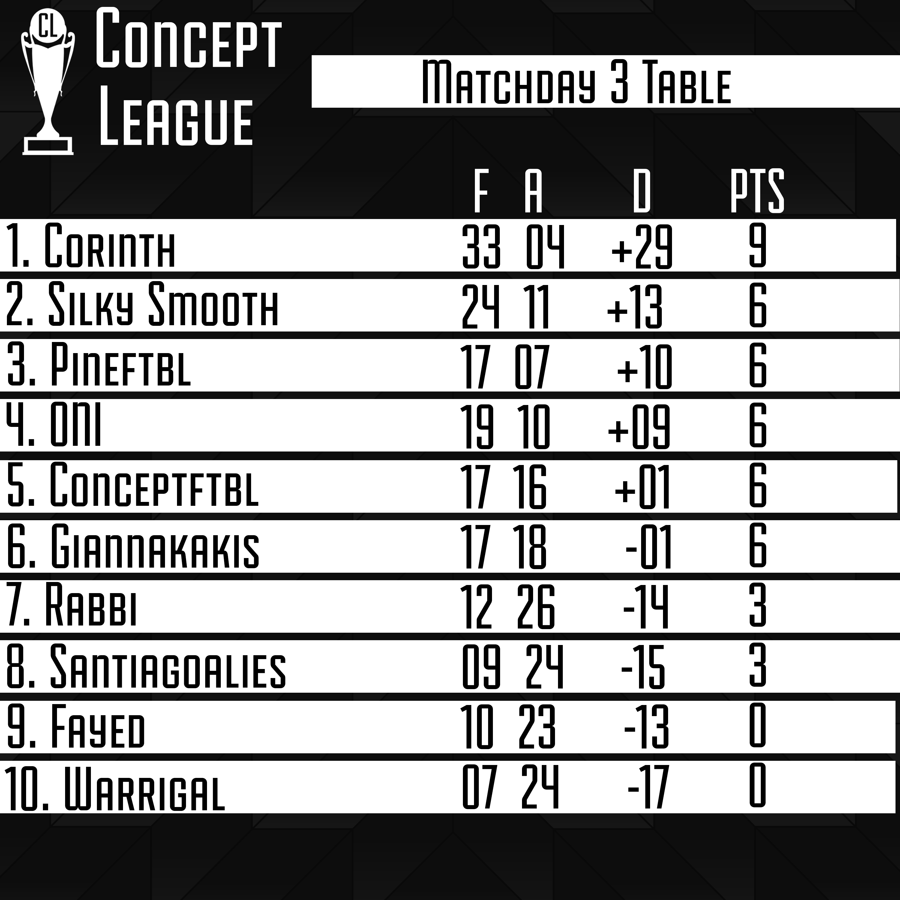 Premier League Matchday 3 Table