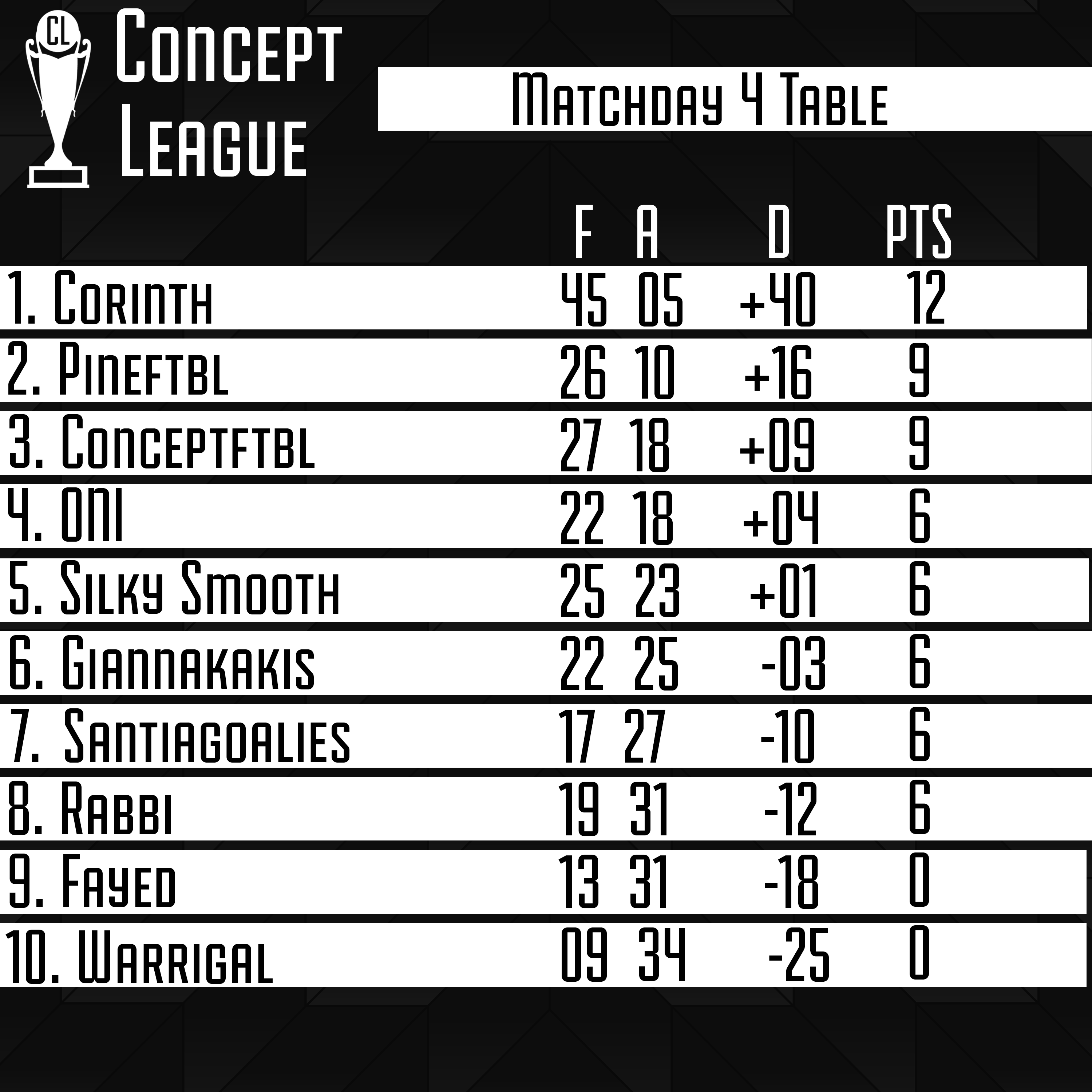 Premier League Matchday 4 Table