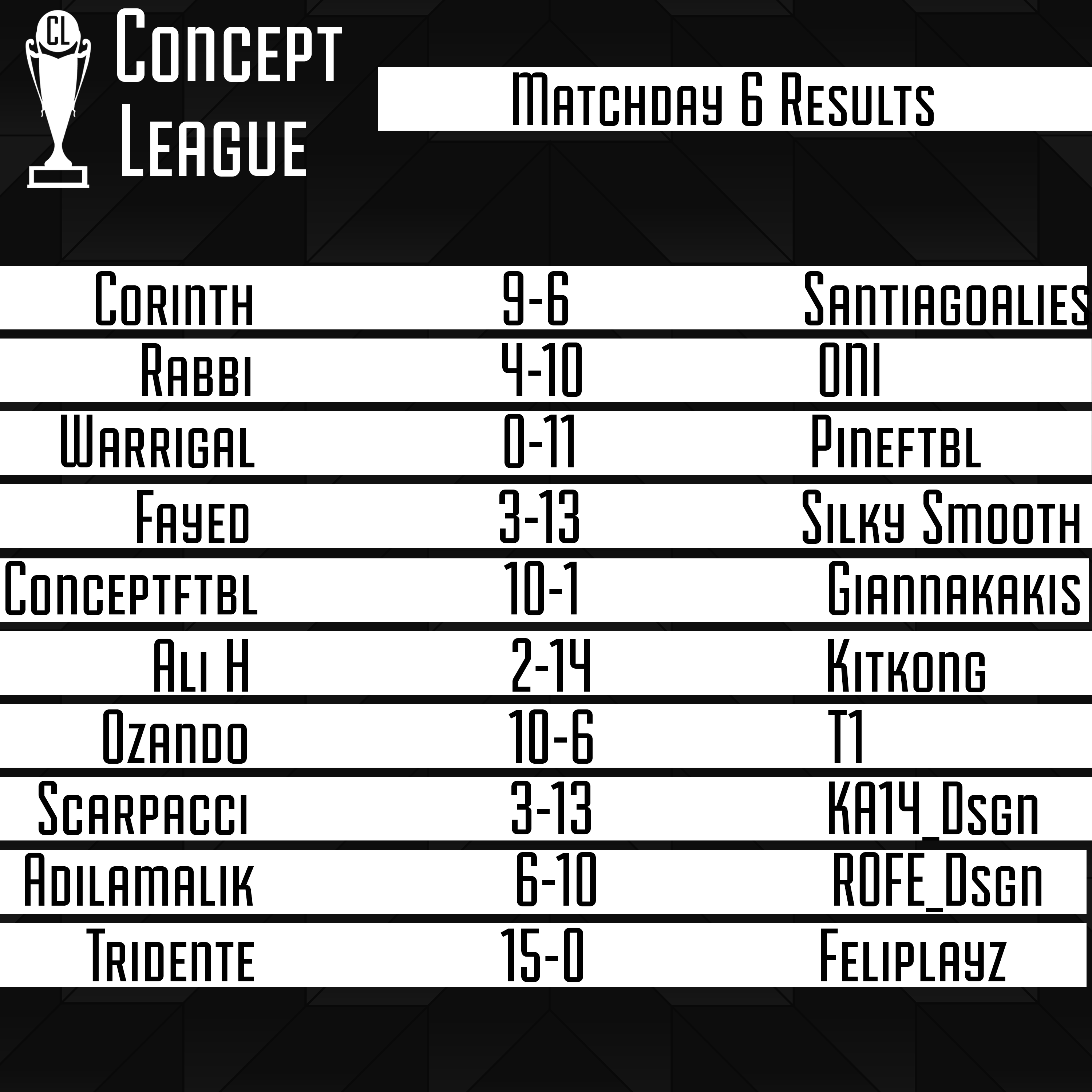 Matchday 6 Results