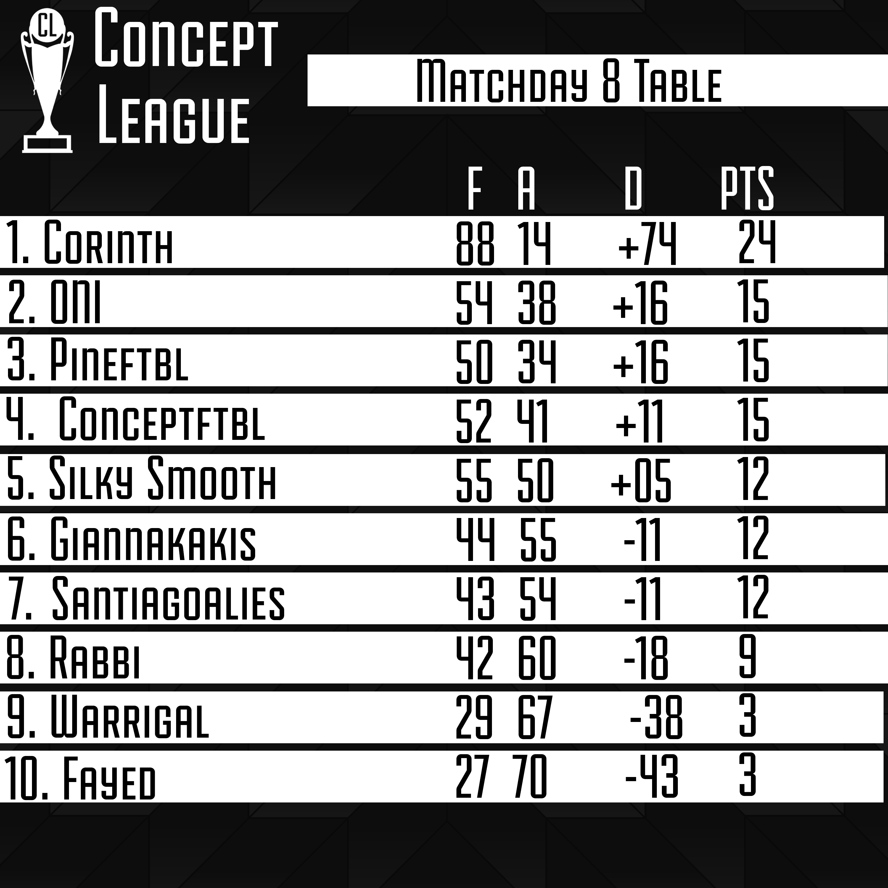 Premier League Matchday 8 Table