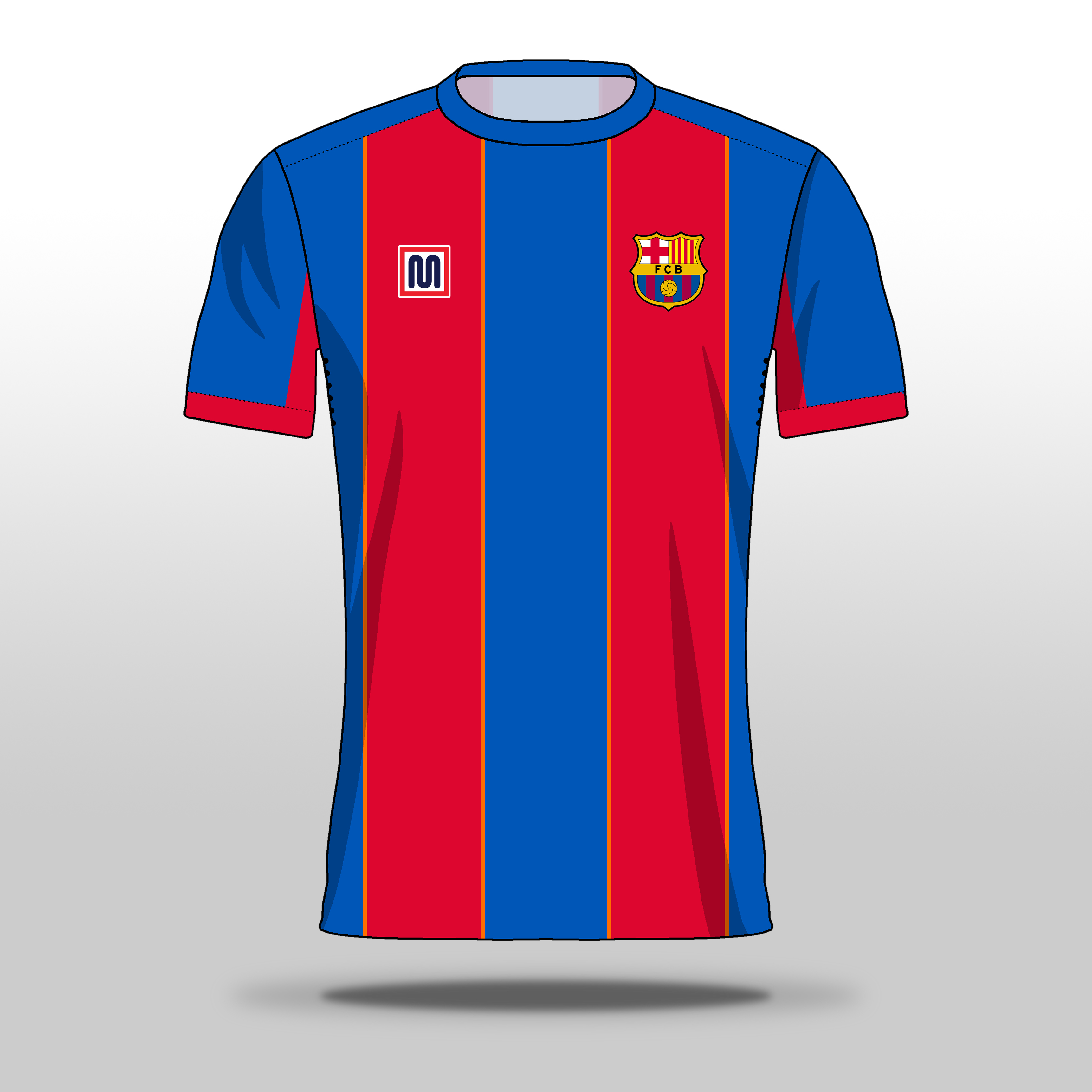 • Generic Description: A simple design using the brighter shades of red and blue that Barca used in the 80's, with stripes outlined in orange, a reference to the 1992 Champions League winning away kit made by Meyba.