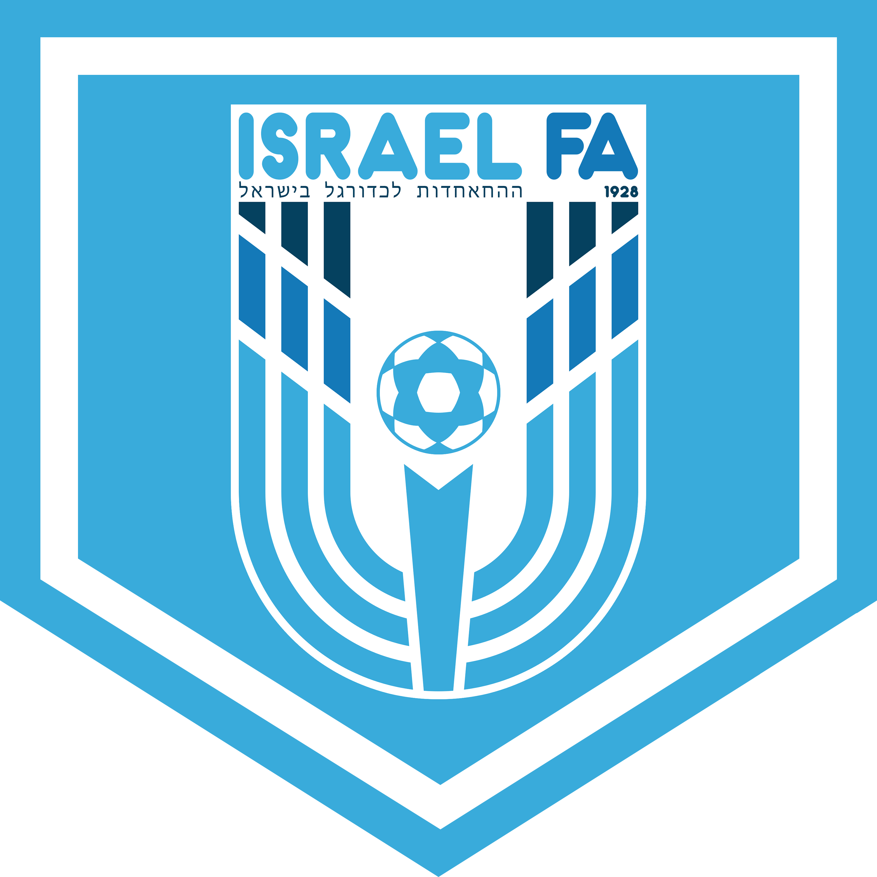 I created a design in wich center is a sky blue Menora with darker blue flames and a football with a 6 corner star in his design