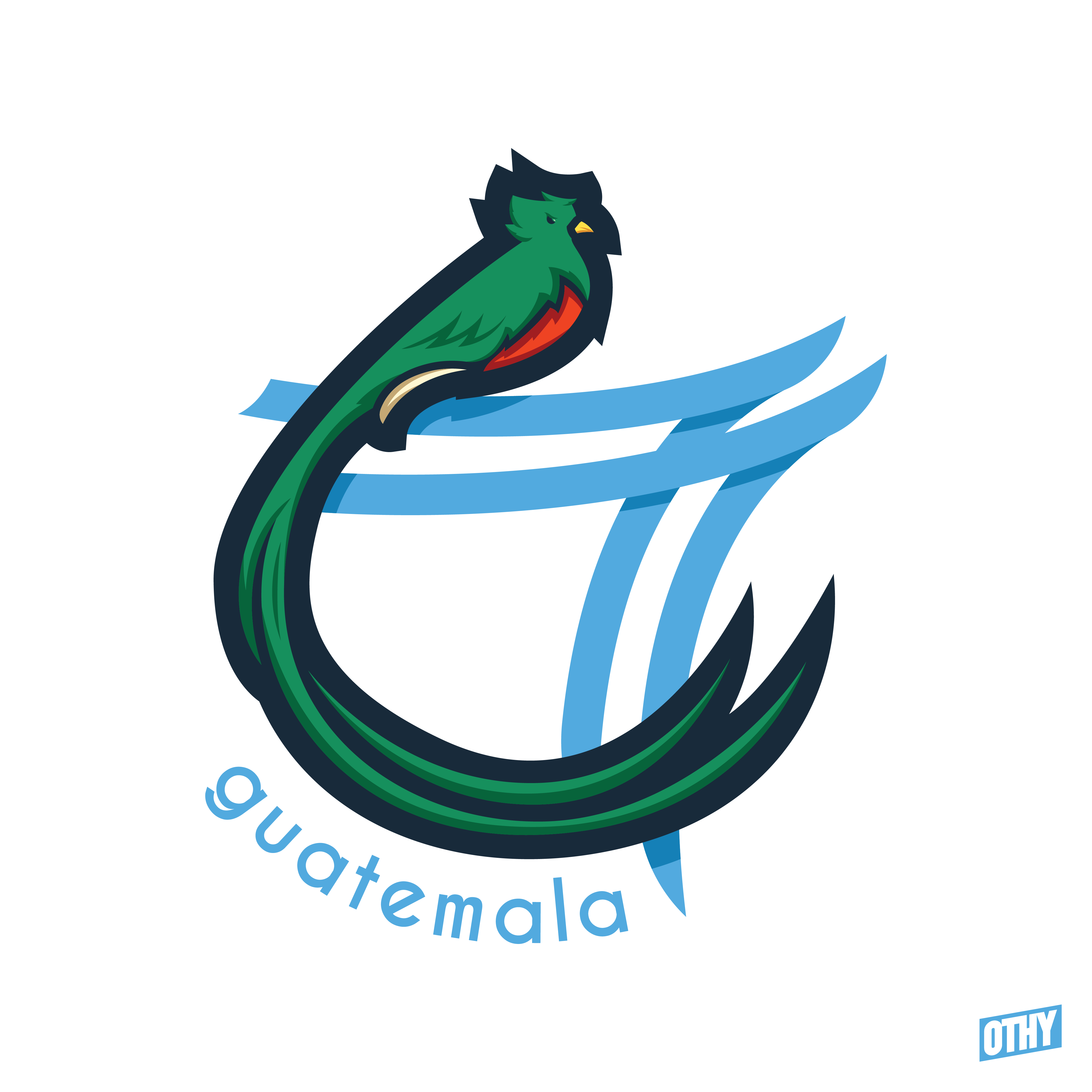 • Generic Description: This crest design features a quetzal (Guatemala's national animal) with a banner based on the national flag, forming a G (for Guatemala)