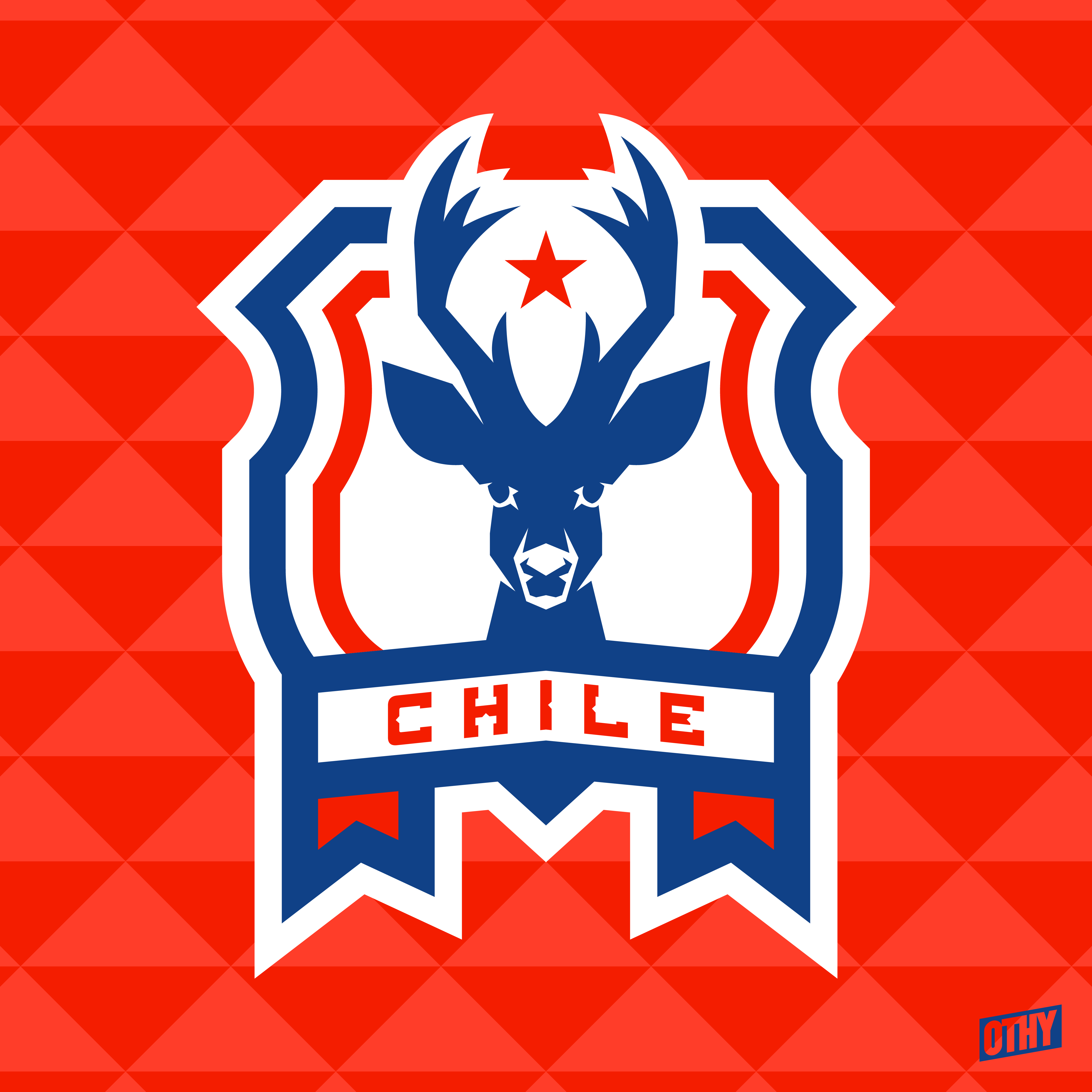 • Generic Description: This crest is inspired by the Chilean coat of arms. Featuring a huemul - one of the two animals featured on the coat of arms - with a star between the antlers, on a shield.