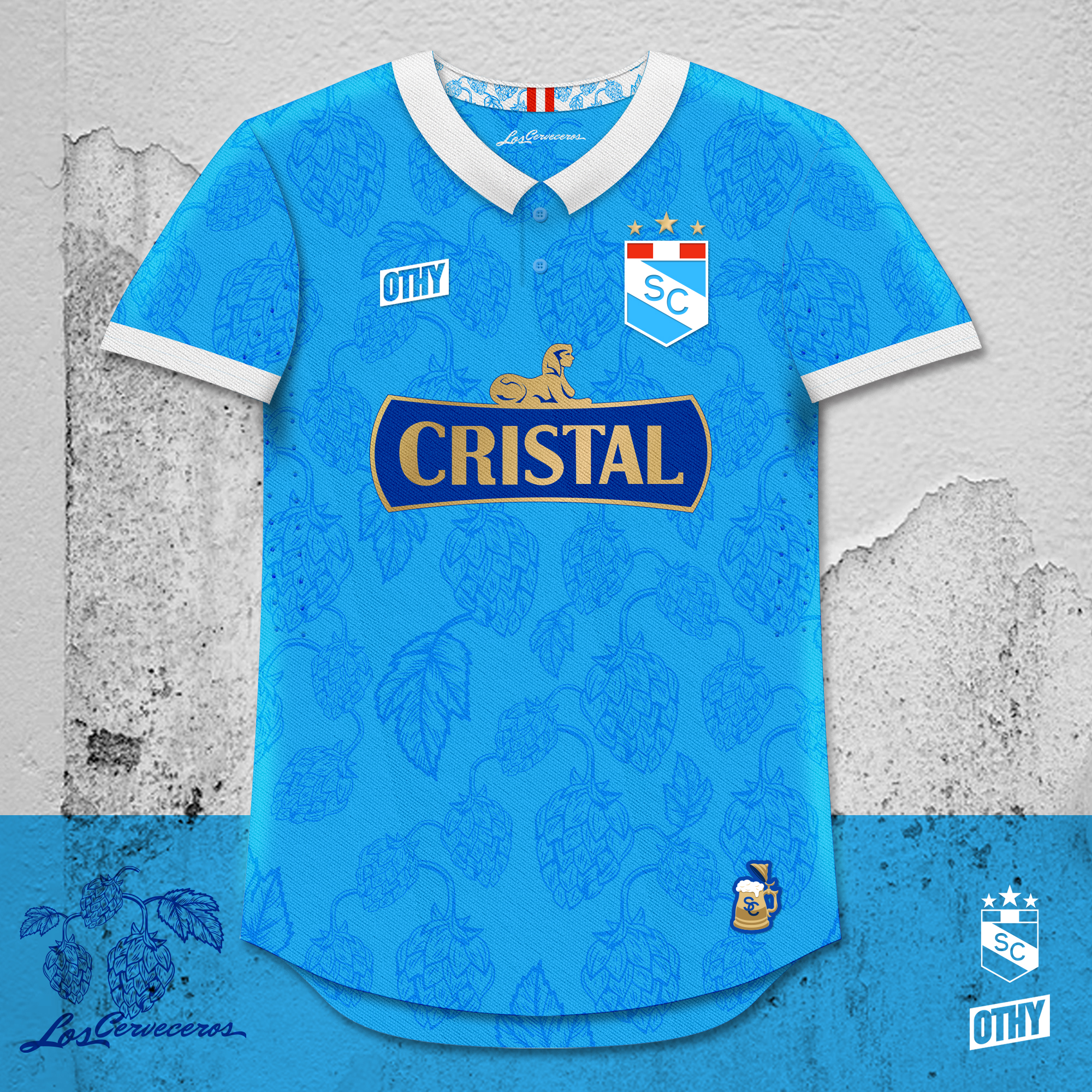On the inside neckline is the hop pattern and a Peruvian flag, and the neck tag features the club's nickname "Los Cerveceros." The "jock tag" features a beer mug with an SC monogram.