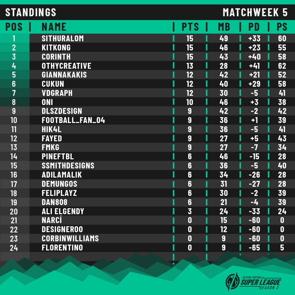 DFSL 3 | Matchweek 6 | Standings