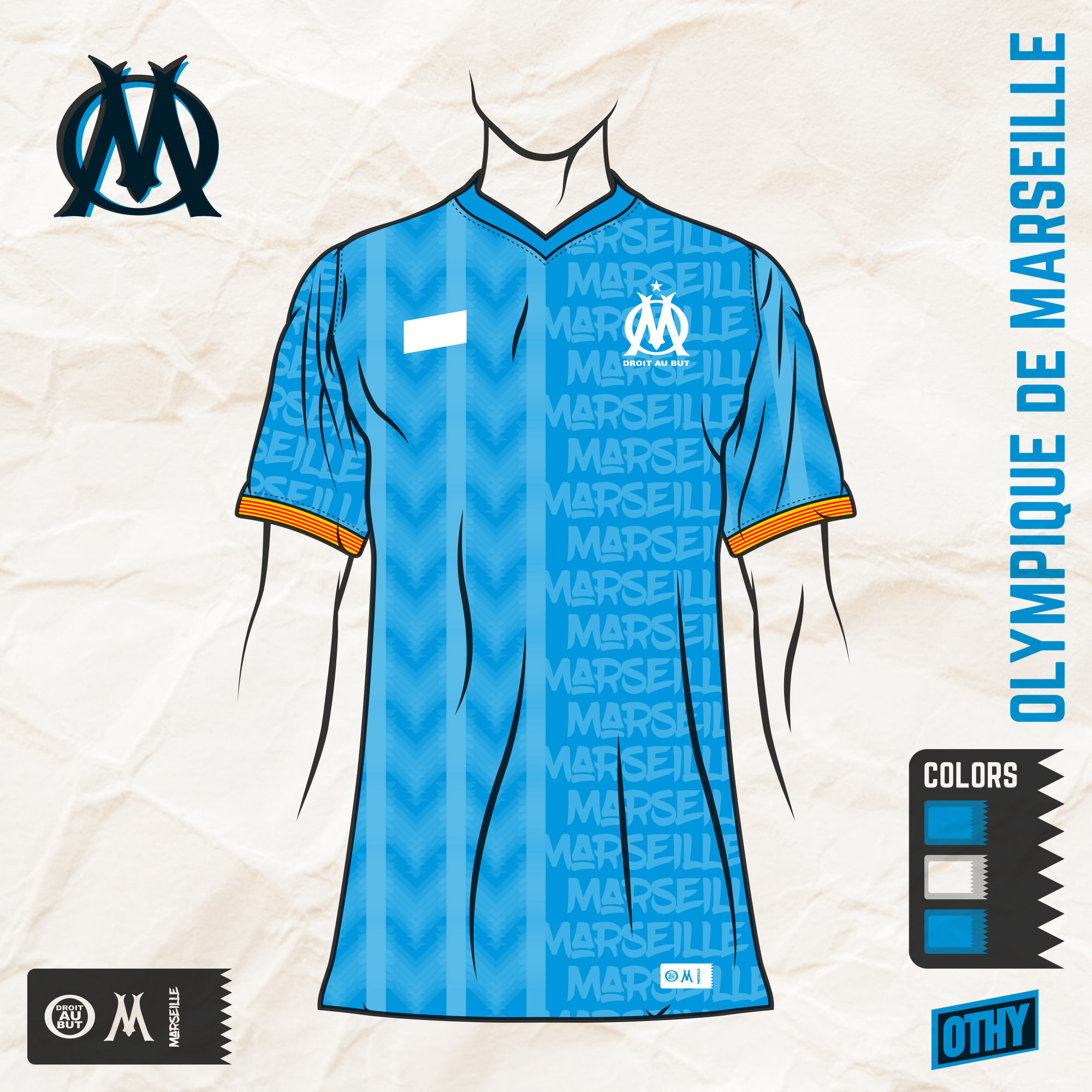 • Generic Description: This Marseille third kit takes inspiration from the city of Marseille, as well as the region of Provence-Alpes-Côte d'Azur - using the part of the flag on the sleeve cuffs.