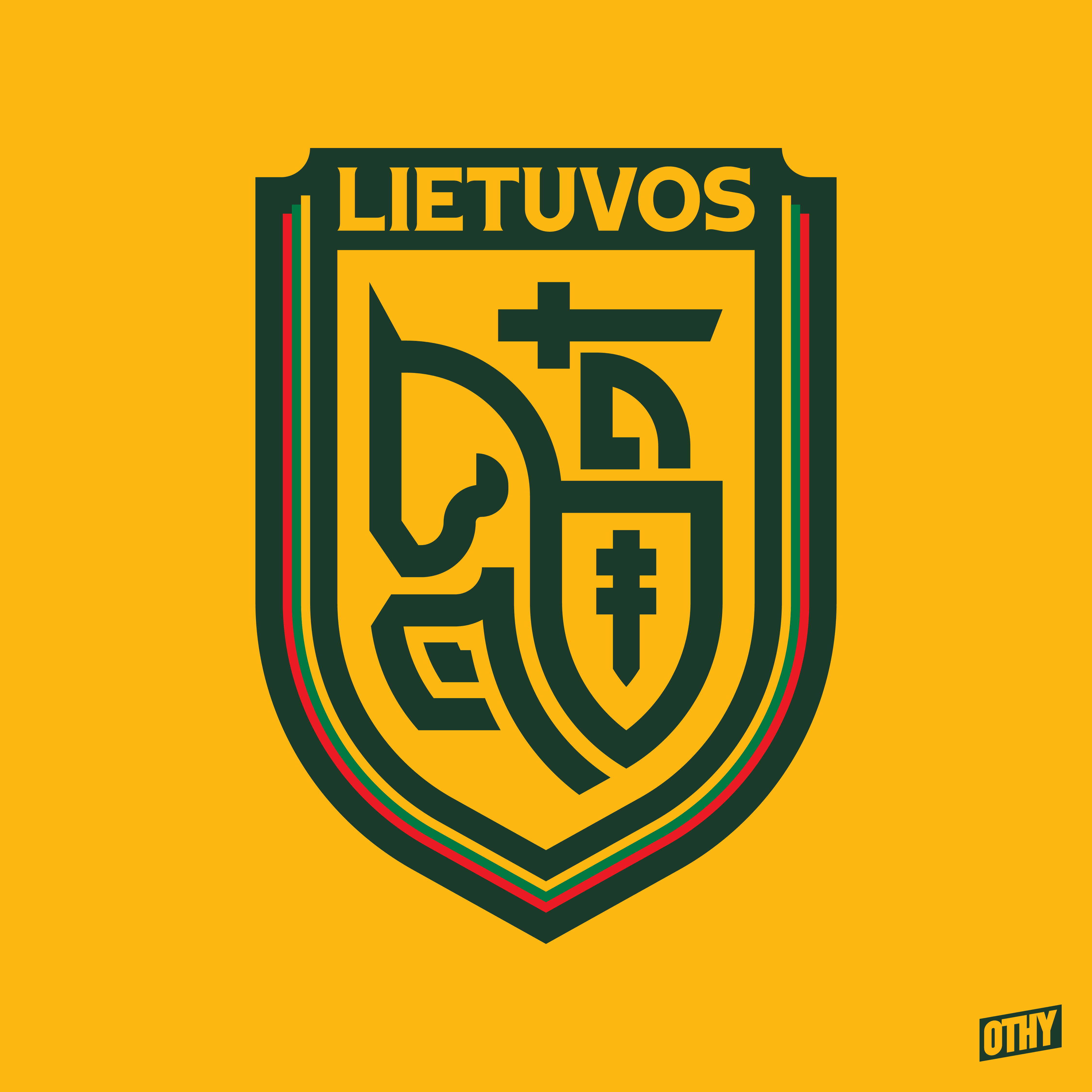 • Generic Description: This crest is based on the Lithuania coat of arms and is a modified version of the logo they wear on their kits. I shaped the horse and knight to fit into a shield and added the Lithuanian flag around the shield.