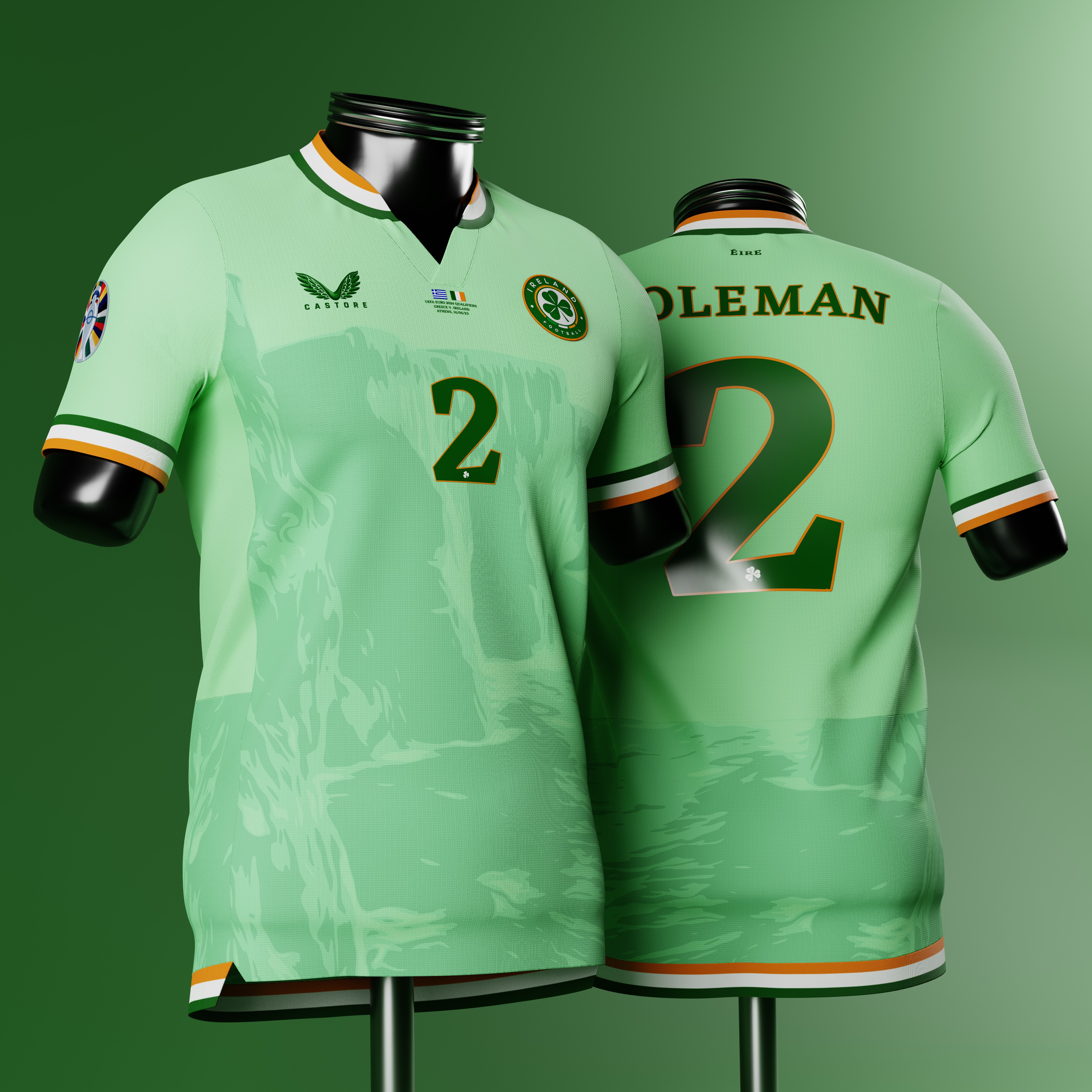 • Generic Description: Third shirt concept for the Irish national team, inspired by the Cliffs of Moher, one of Ireland's most iconic landscapes.