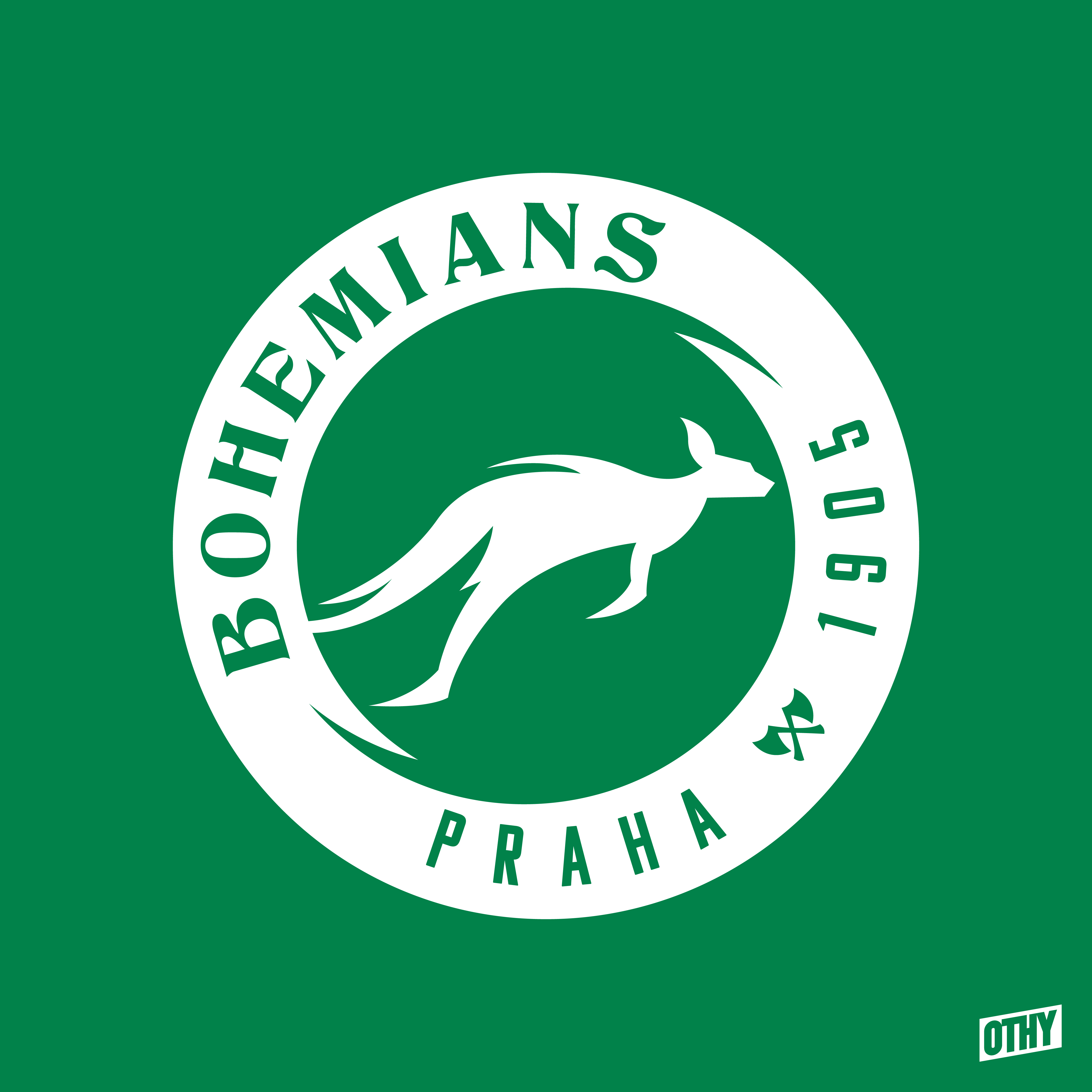 • Generic Description: I've updated the Bohemians Praha crest by adding some implied motion to the kangaroo and the area around it, as well as rotating the text and using unique fonts. I've also added the crossed axes from the Vršovice coat of arms.