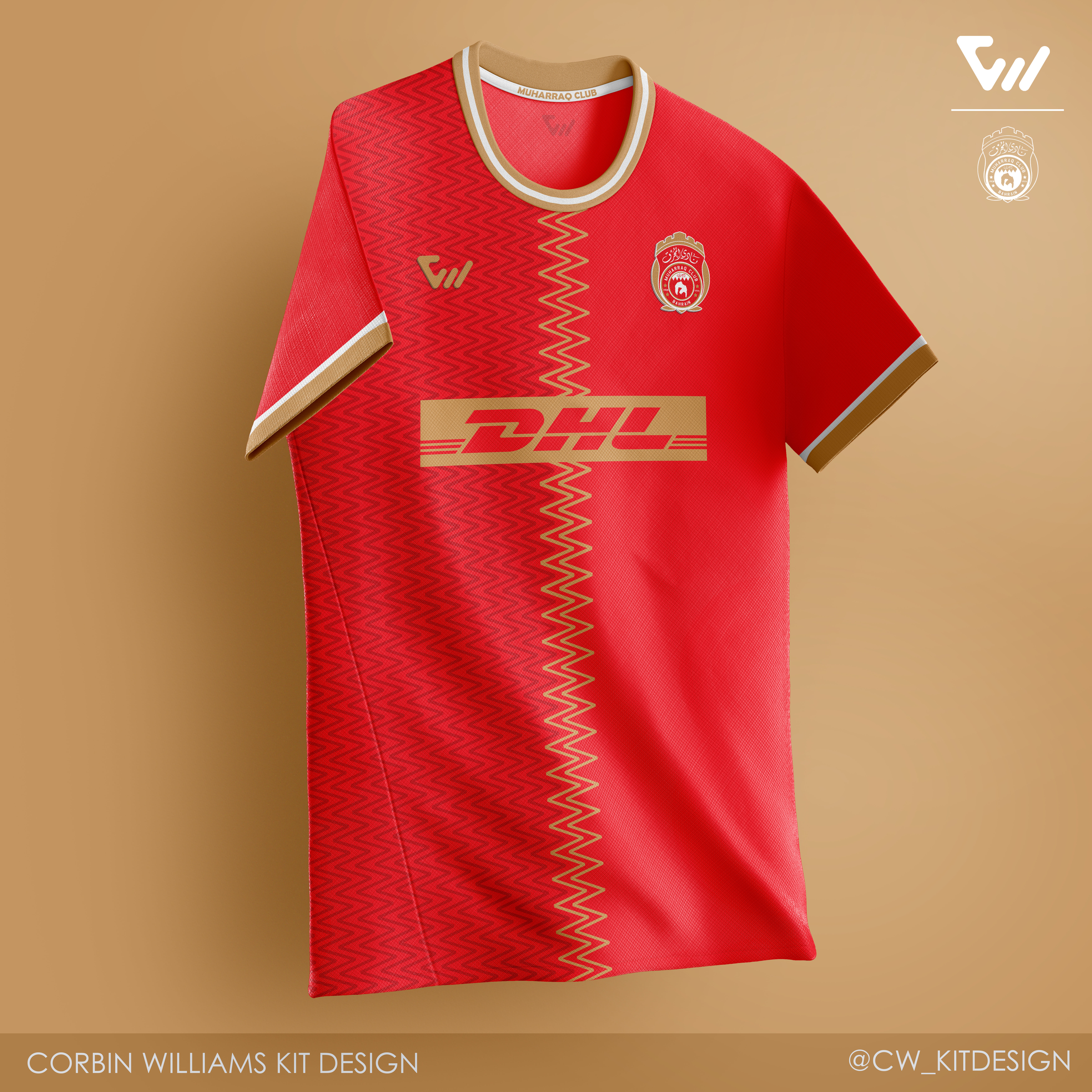 • Generic Description: Design is inspired by the flag of Bahrain, using the flag as a base for the pattern throughout the shirt.