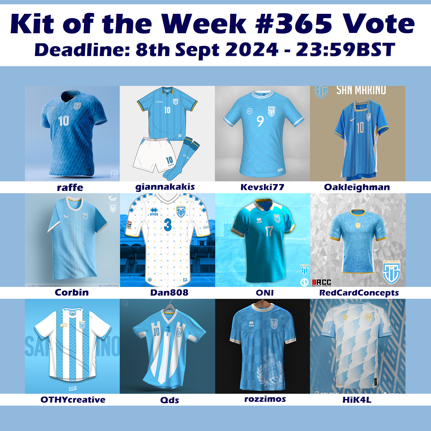 Here is the vote for the San Marino stage of the Kit of the Week challenge.