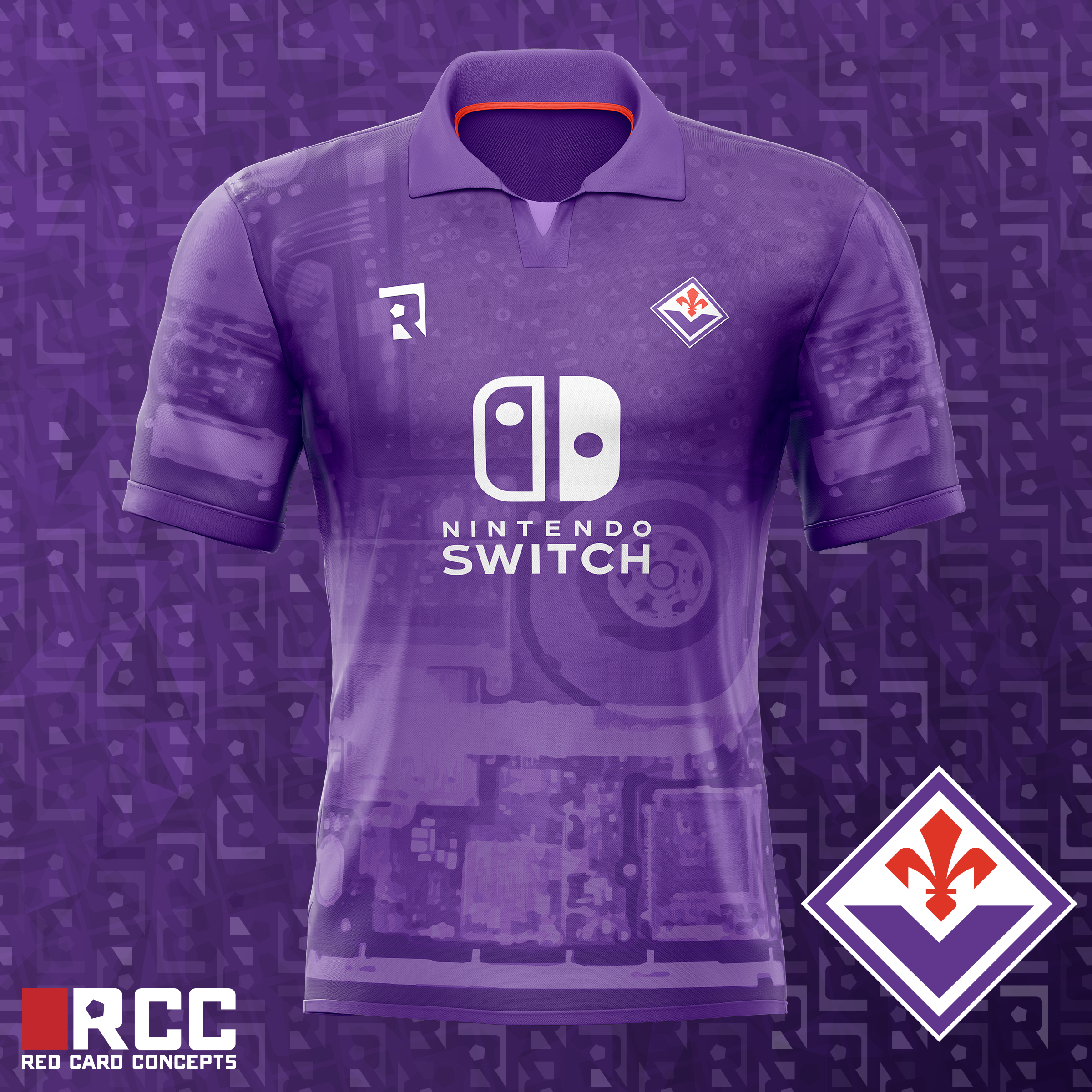 • Generic Description: A lot going on here... I wanted to modernize that classic 90s Nintendo sponsored kit, while also playing into nostalgic elements from then. So we've got a Fiorentina kit resembling an atomic purple gameboy color- but it's a Nintendo switch back there. Even the left and right arms are the joycon internals. Anyways I had a lot of fun making something stupid.