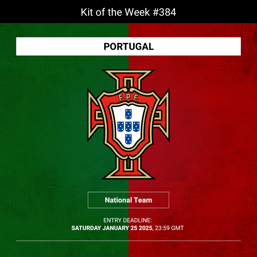 Take a read of the upload rules on the upload page and get Portugal shirt/kit entries in by one minute to midnight on Saturday 25th January 2025 (23:59 GMT).