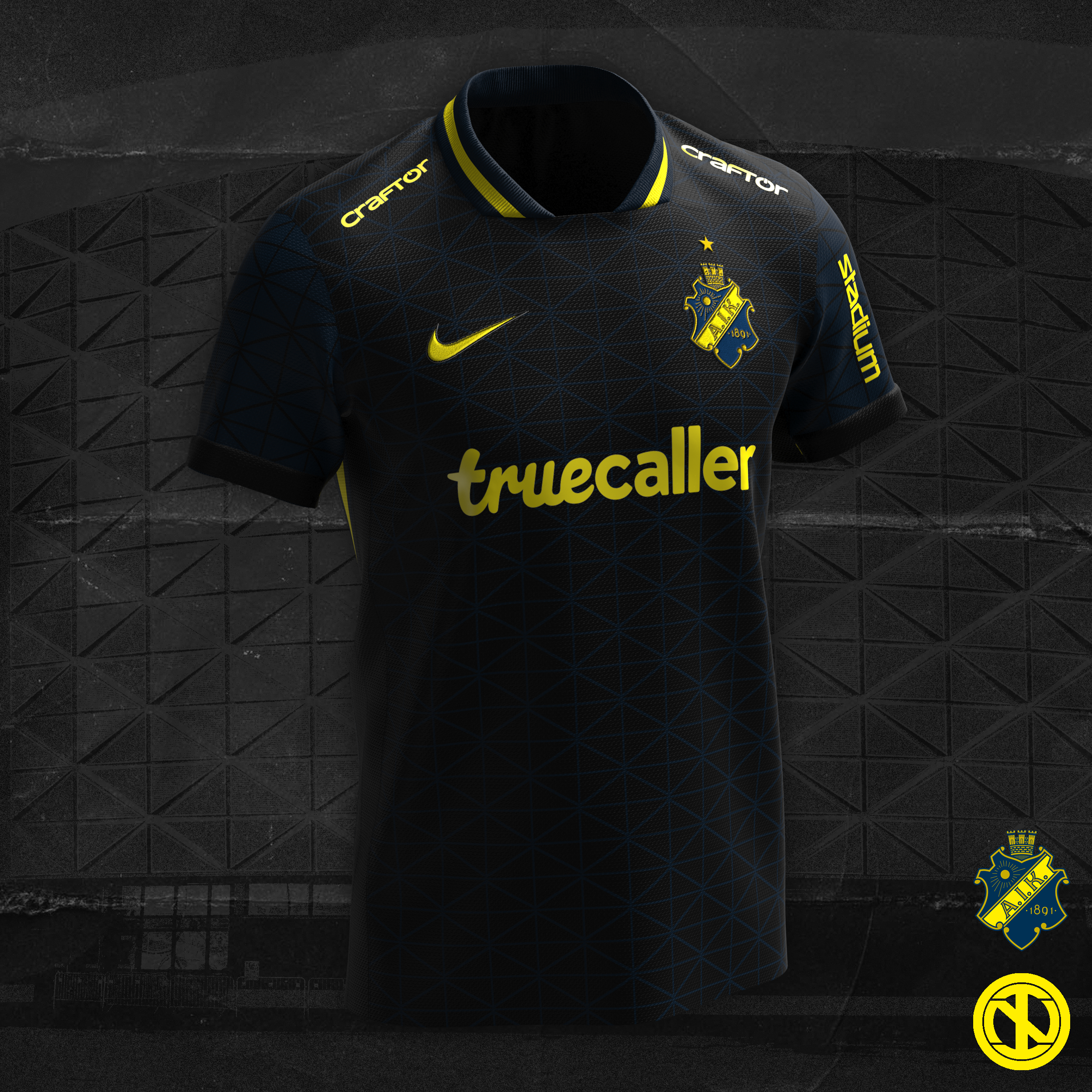 • Generic Description: Home kit concept for Swedish club AIK. The shirt features a pattern inspired by the façade of Solna's Nationalarenan, the club's home as well as Scandinavia's largest stadium.