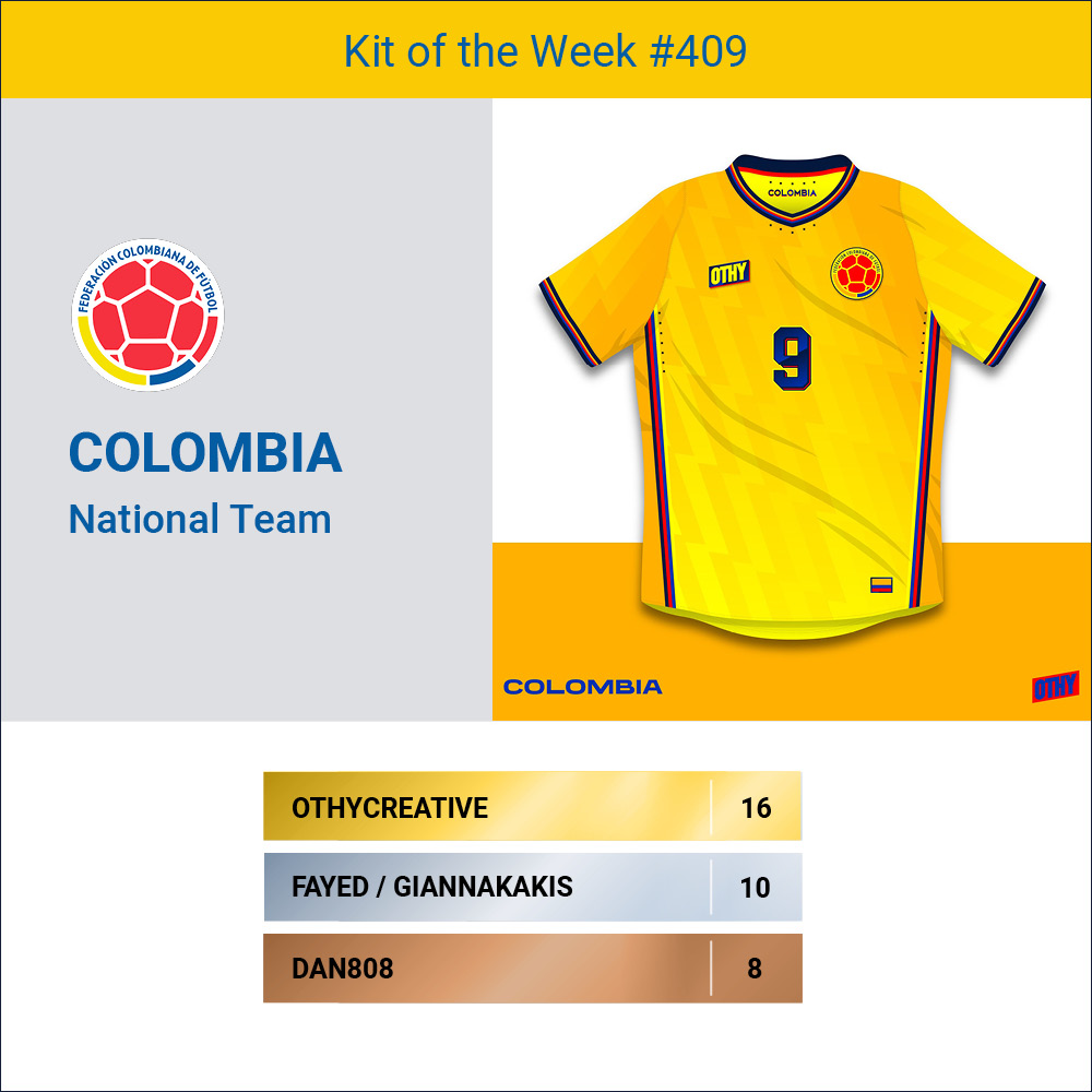 Congratulations to Othycreative, winner of the Colombia National Team stage of the 409th Kit of the Week challenge.