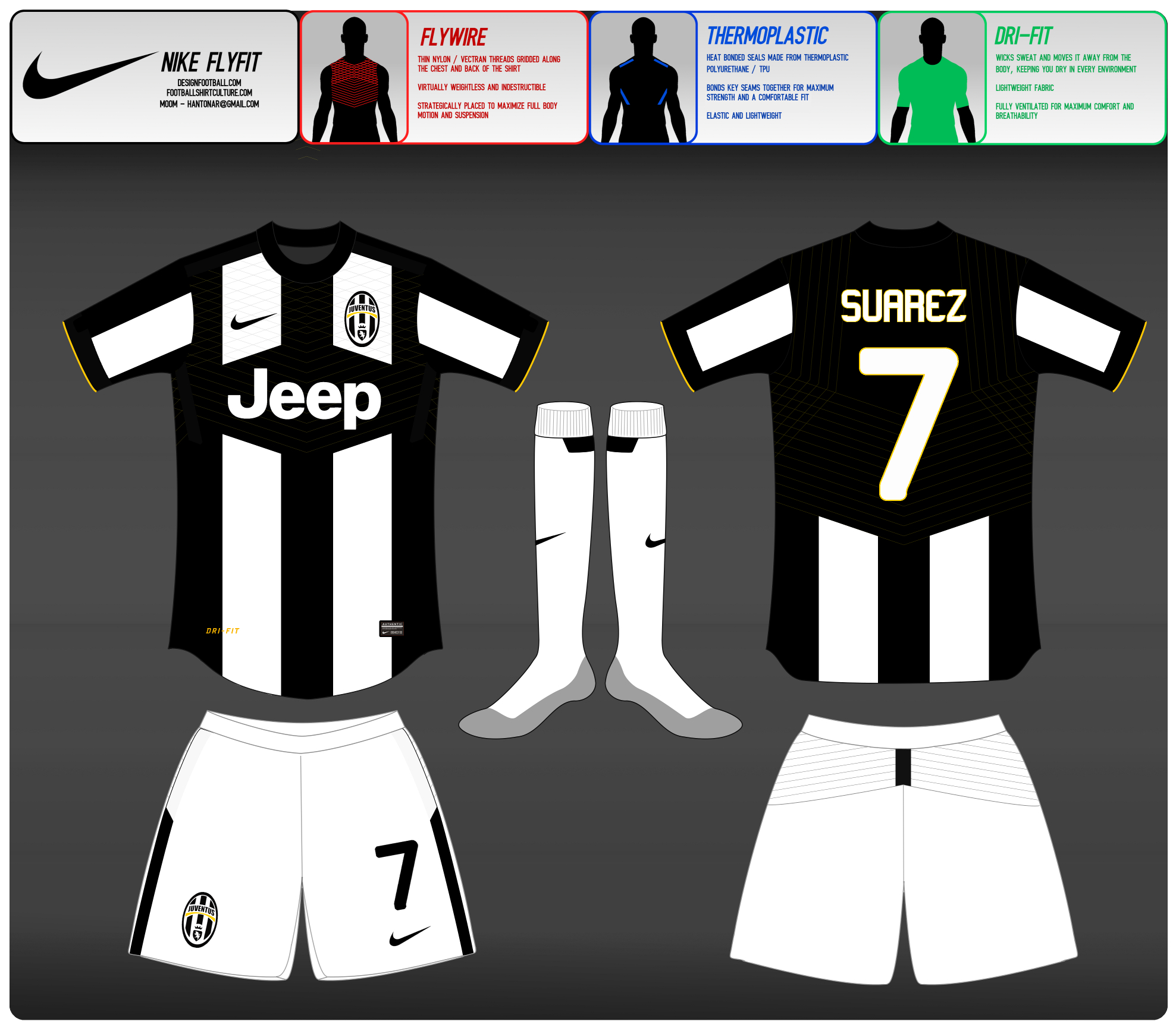 • Generic Description: In this entry I use the traditional striped shirt but with a sponsor cutout thats influenced with the flywire\'s shape. I\'d imagine this template and many small variations of it could be used for other teams using striped kits.