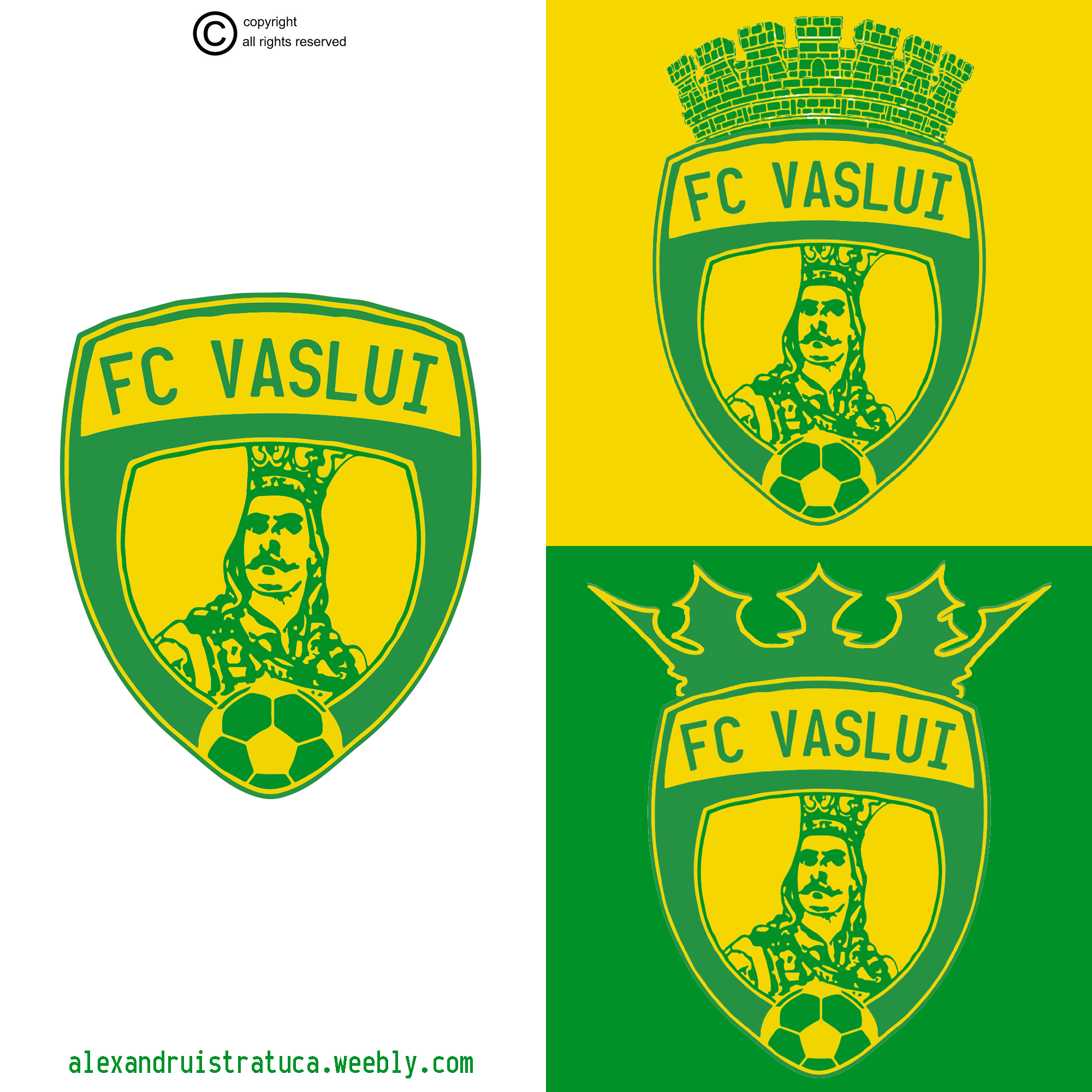 Three versions of FC Vaslui logo. Symbol: Stefan the Great.
