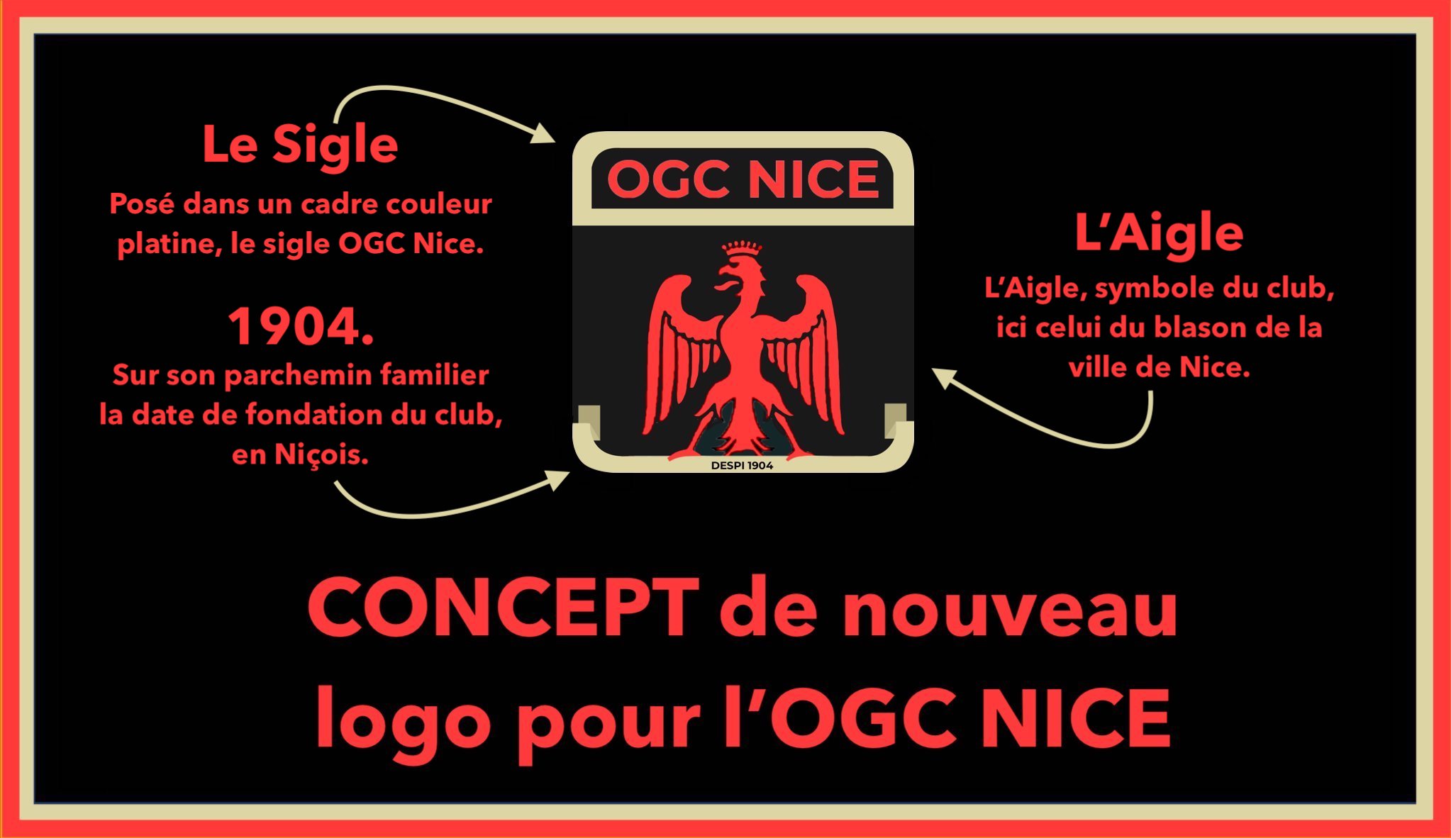 Concept de logo pour l'OGC Nice, modernisé avec l'aigle cette fois mis en rouge, comme il l'est sur le blason de la ville.