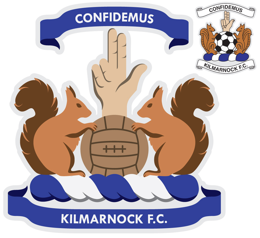 A modern take on the Killie crest. The original (top right) is based on the town crest, but was designed in 1992 after we got told to change it. Heraldry laws blah blah. Look a bit cartoon like though.